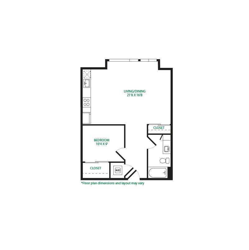 Estudio, 1 Baño, 475 pies²Galería del Modelo