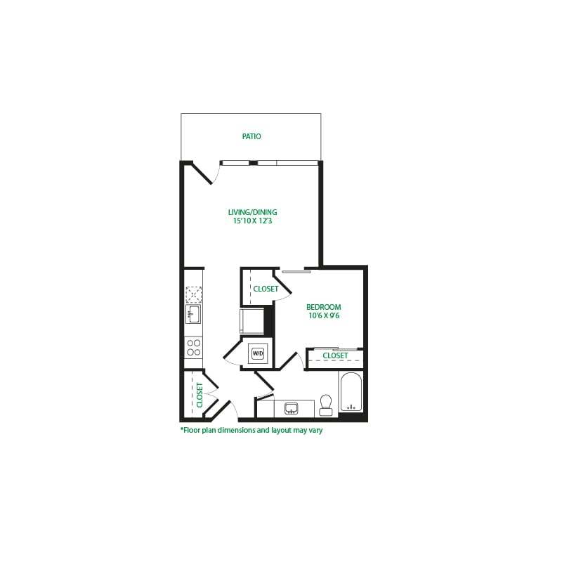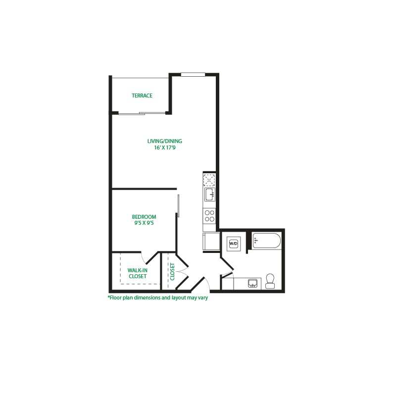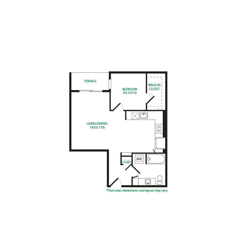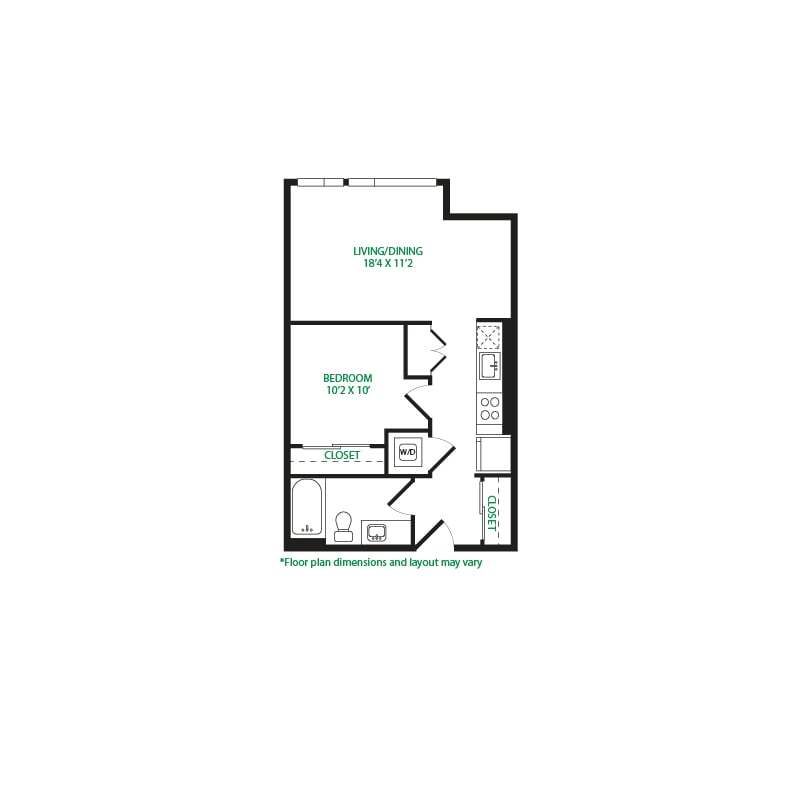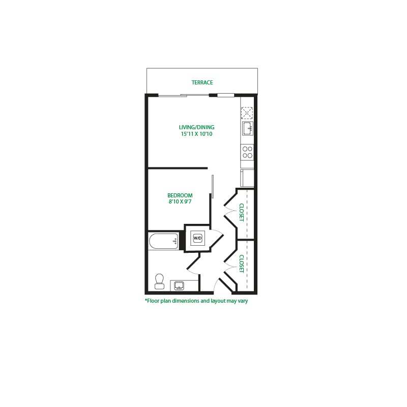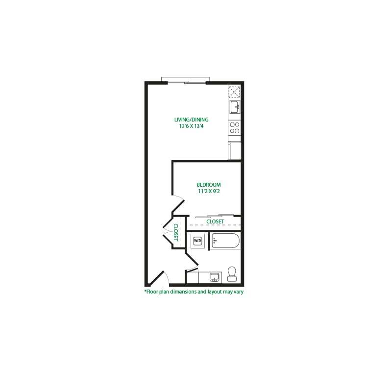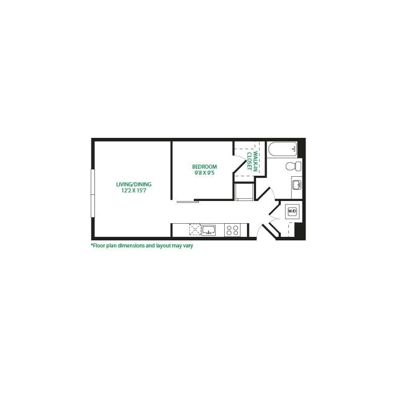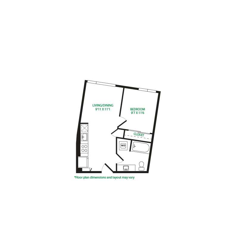 Modelo de apartamento: Studio 1ELlame para PreciosEstudio, 1 Baño, 475 sq ftNo Disponible![]()