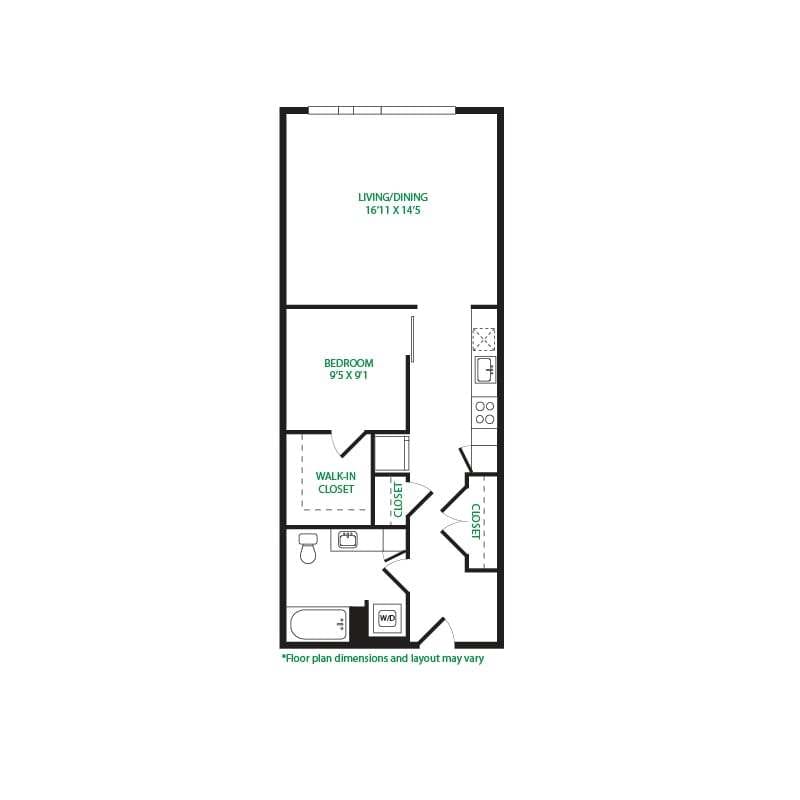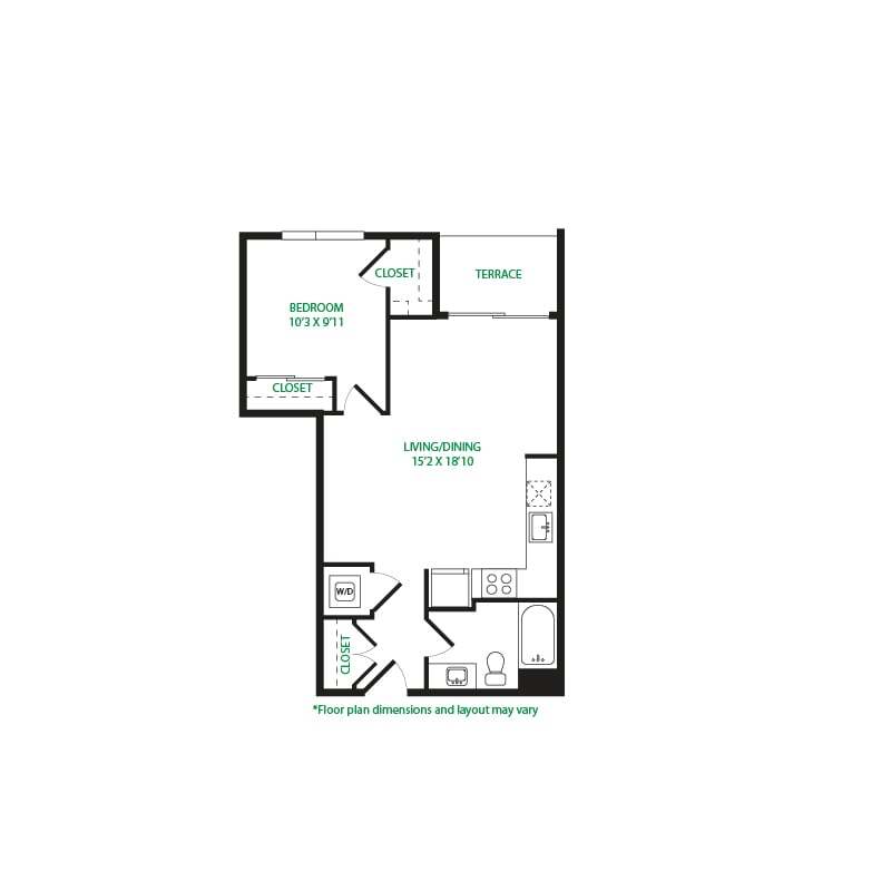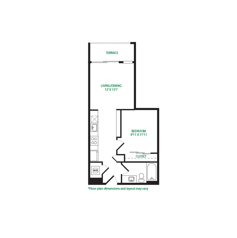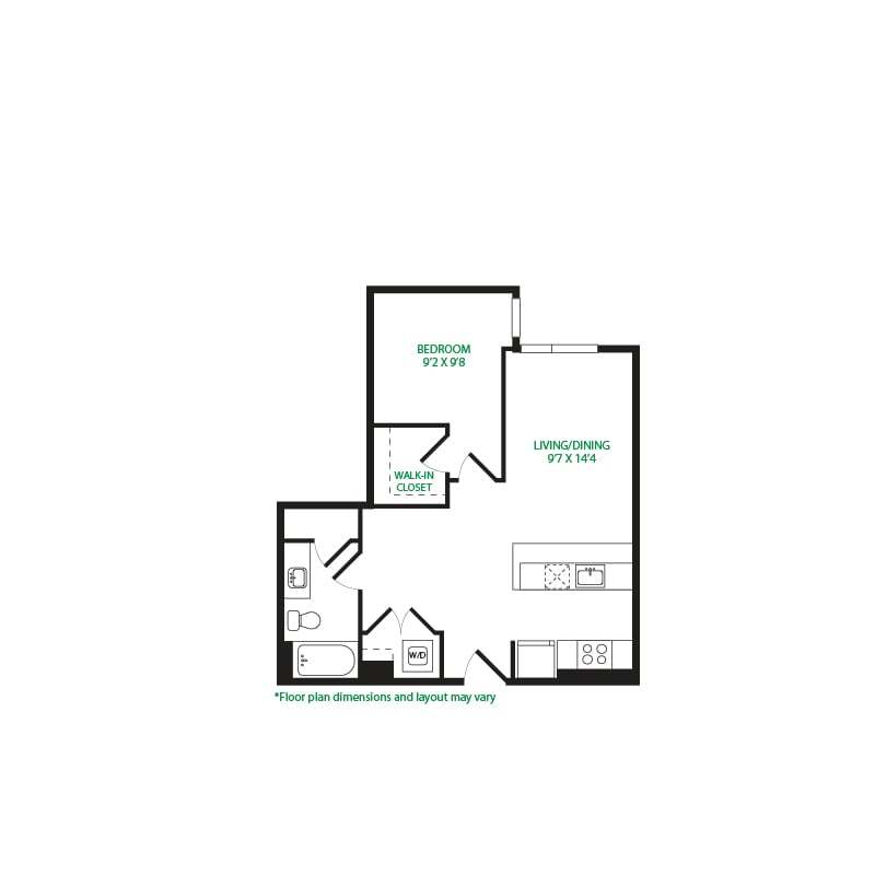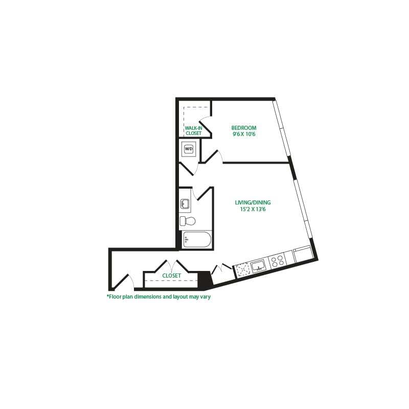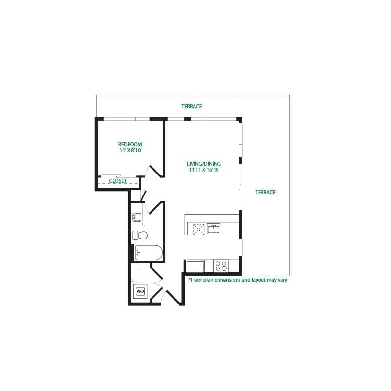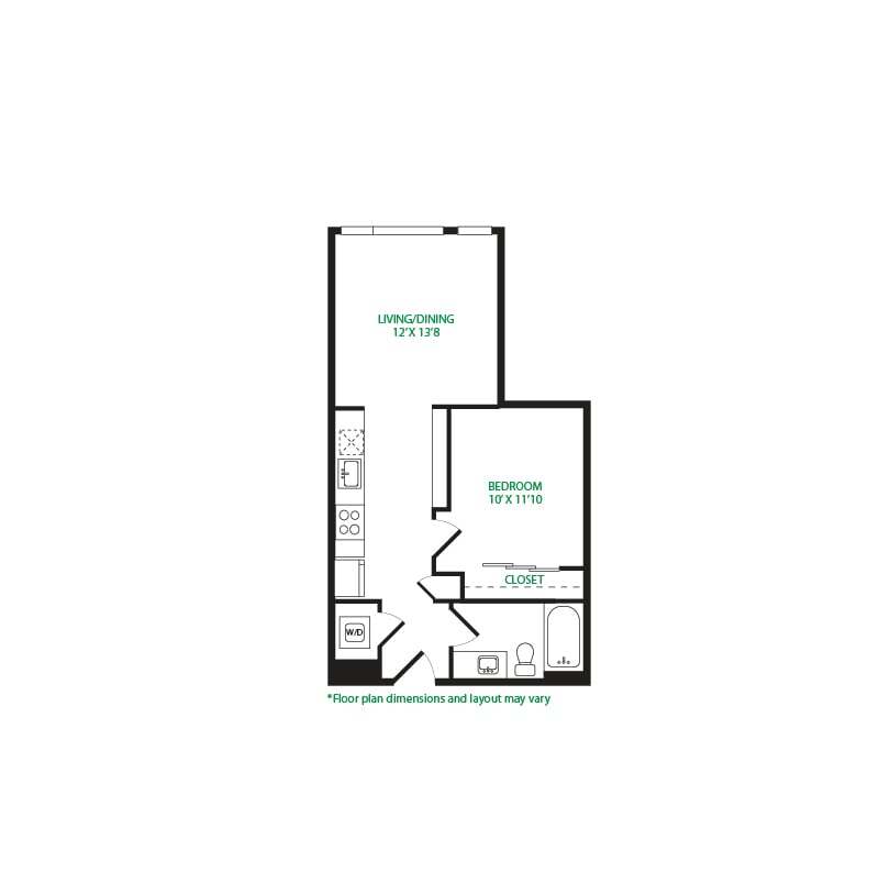 Modelo de apartamento: Studio 1ELlame para PreciosEstudio, 1 Baño, 475 sq ftNo Disponible![]()