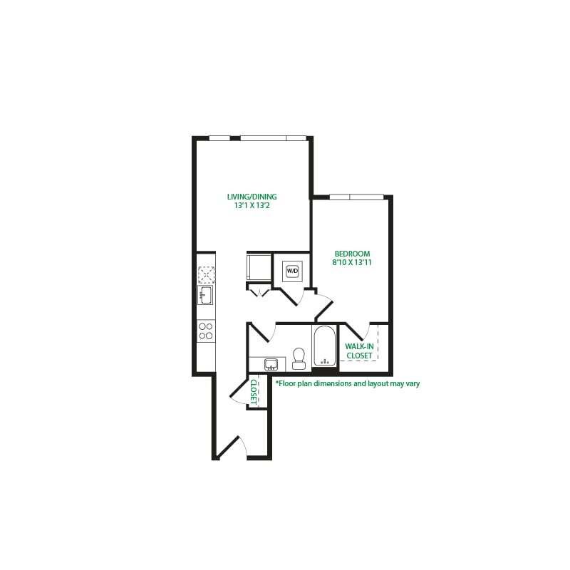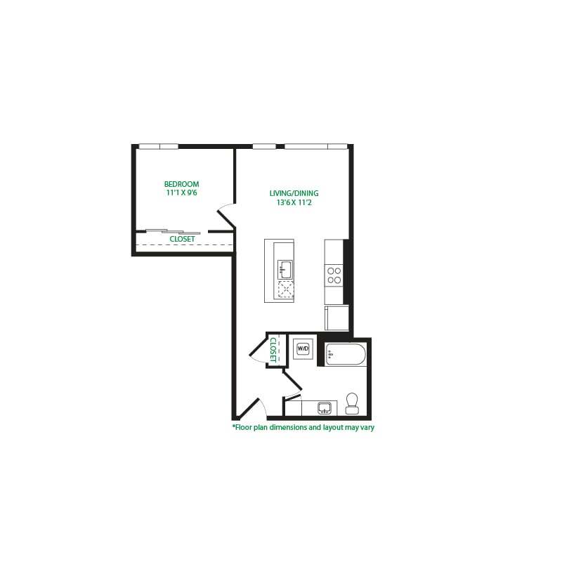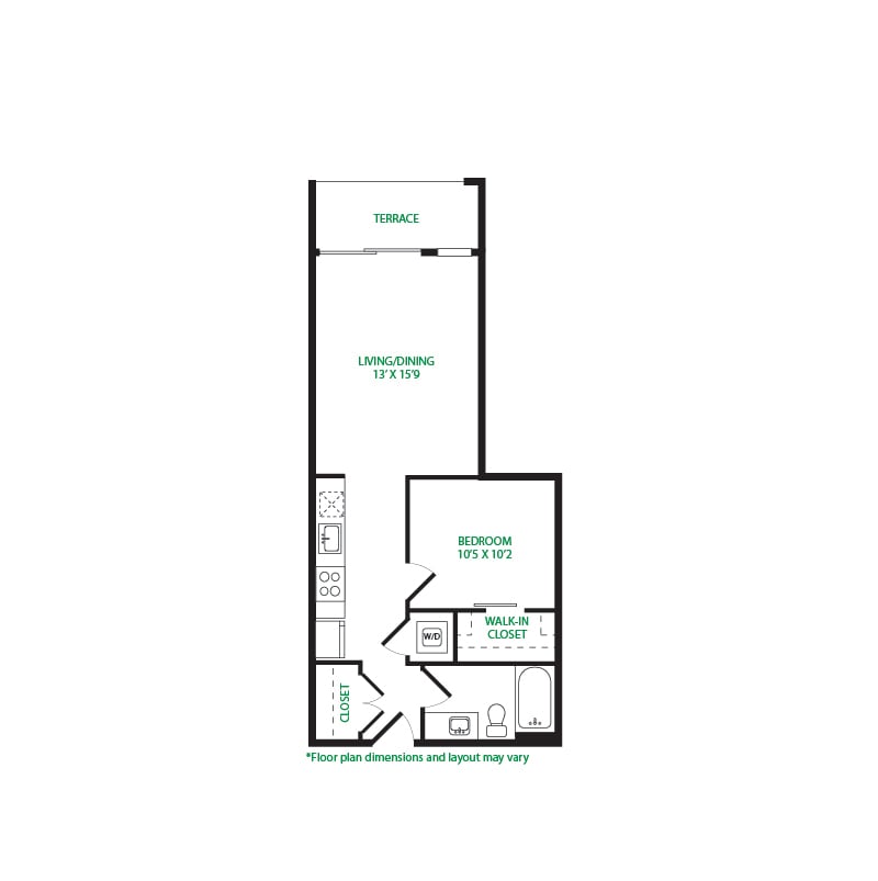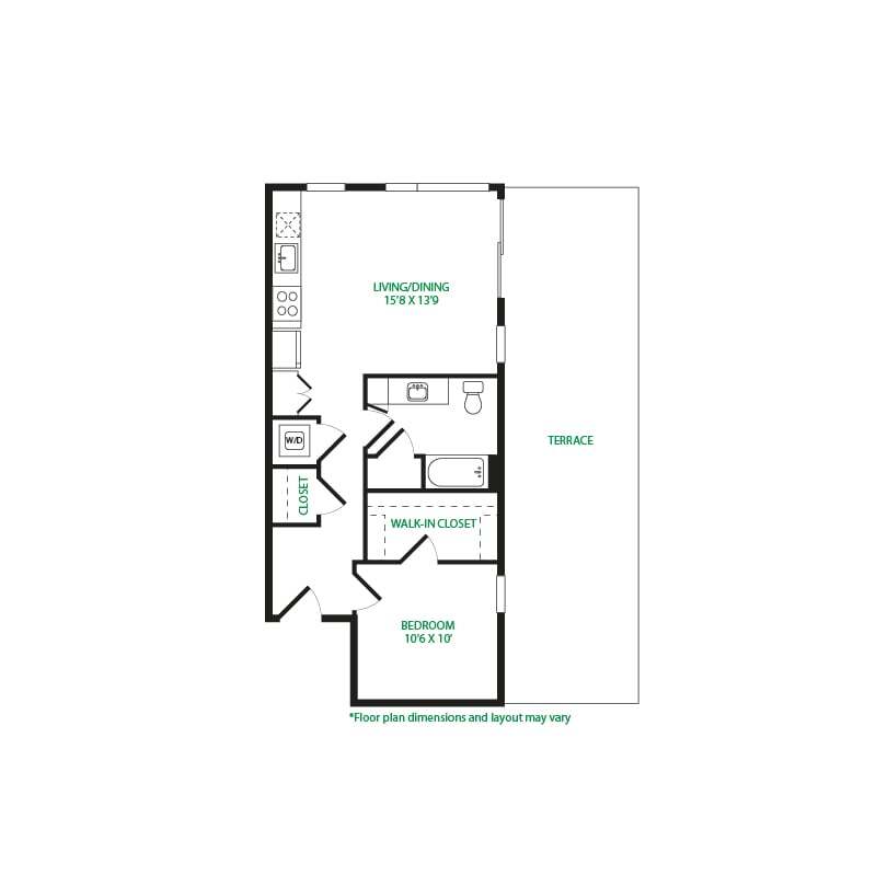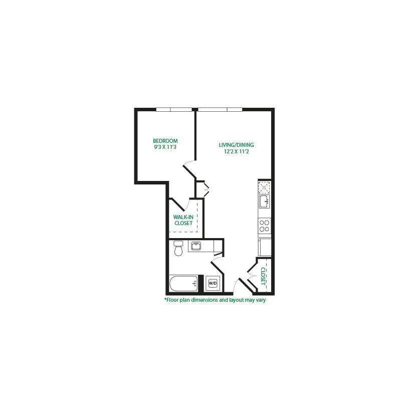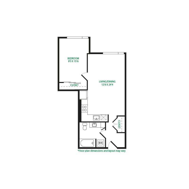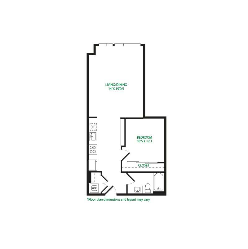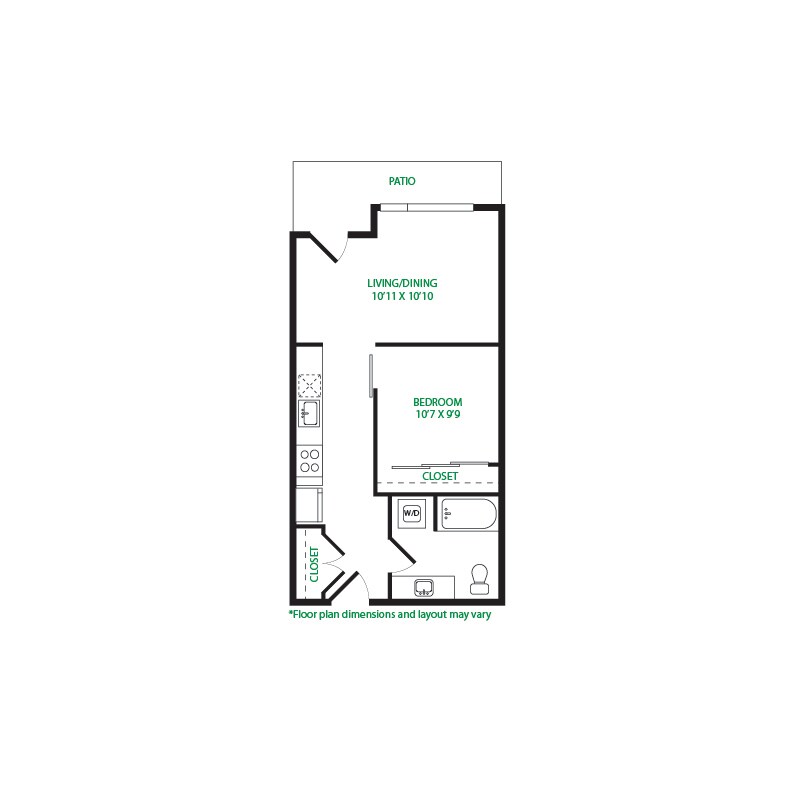 Modelo de apartamento: Studio 1ELlame para PreciosEstudio, 1 Baño, 475 sq ftNo Disponible![]()