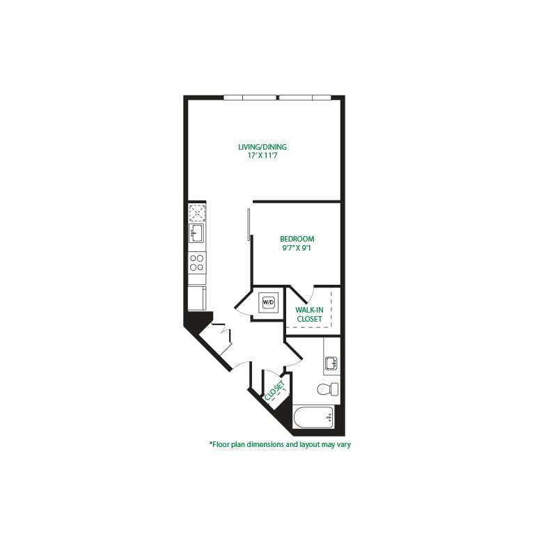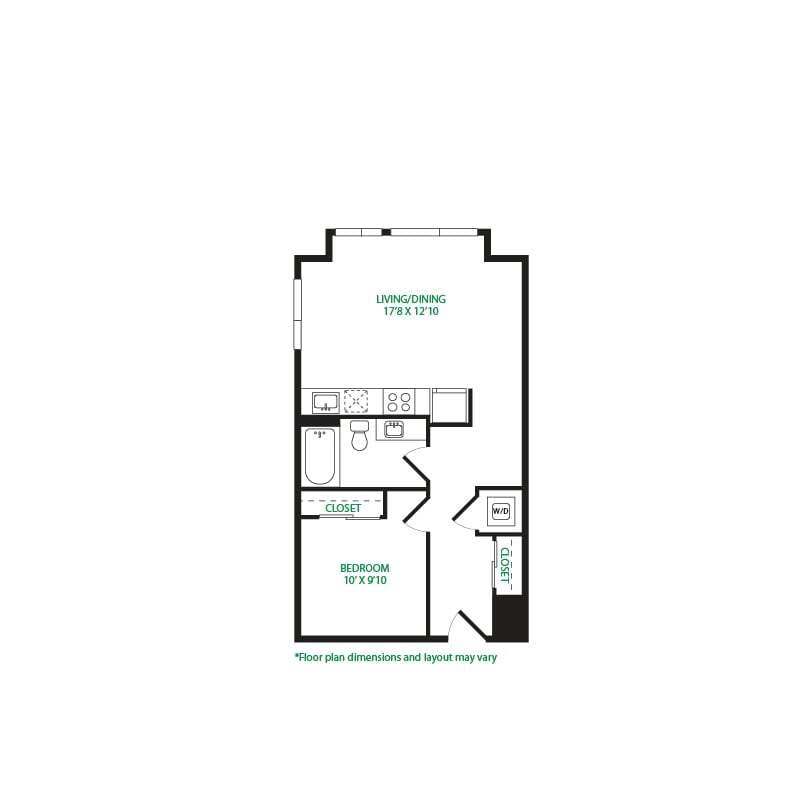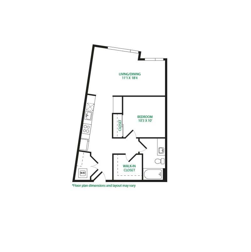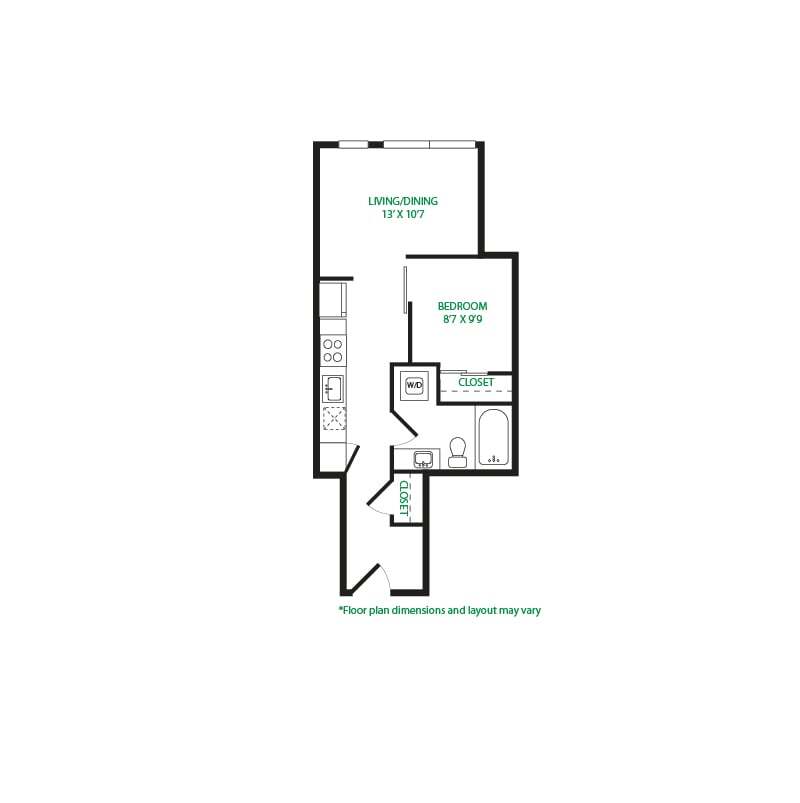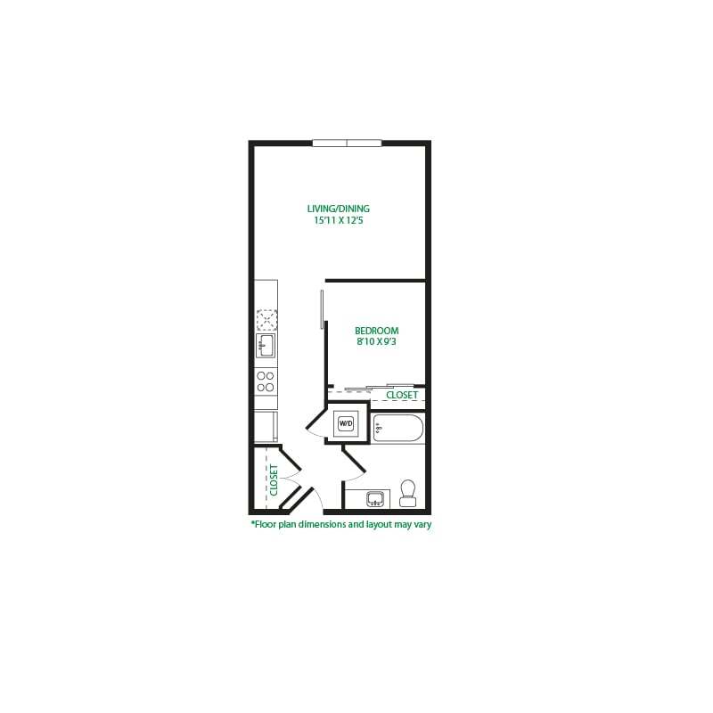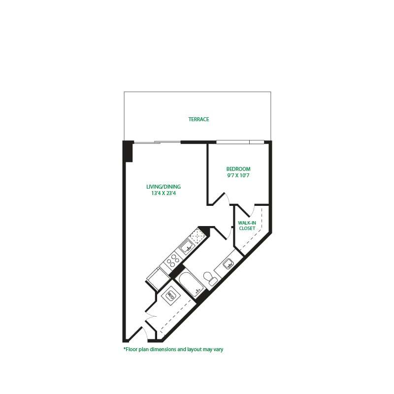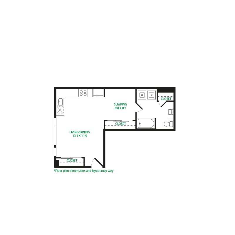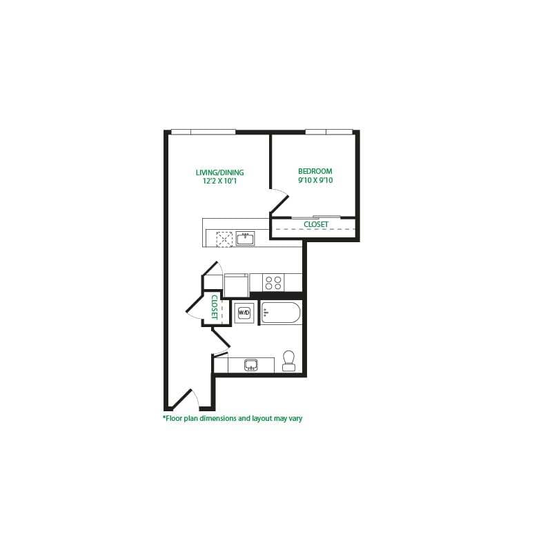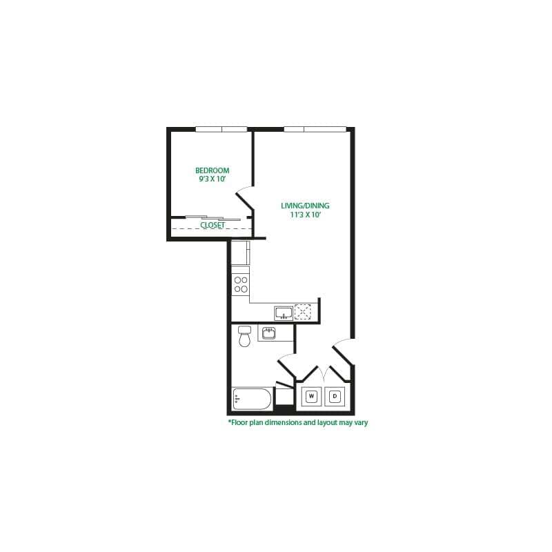 Modelo de apartamento: Studio 3SLlame para PreciosEstudio, 1 Baño, 570 sq ftNo Disponible![]()
