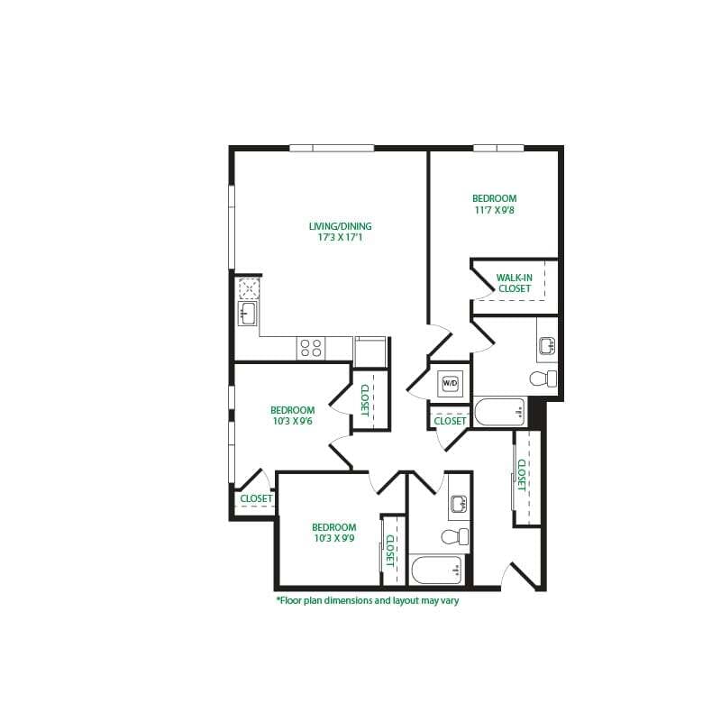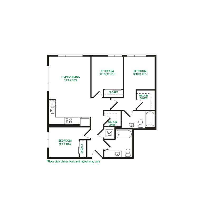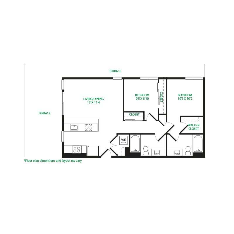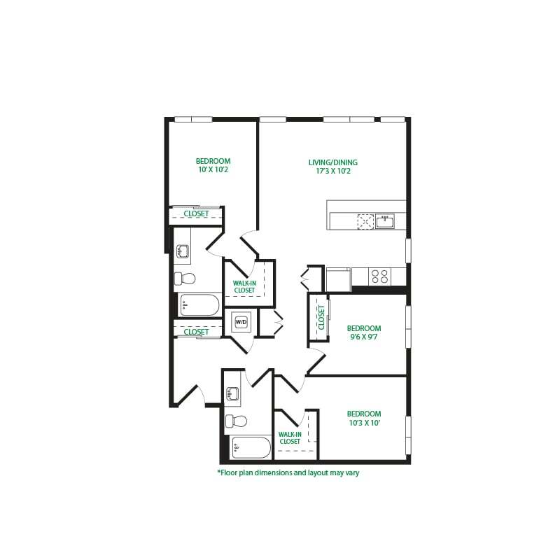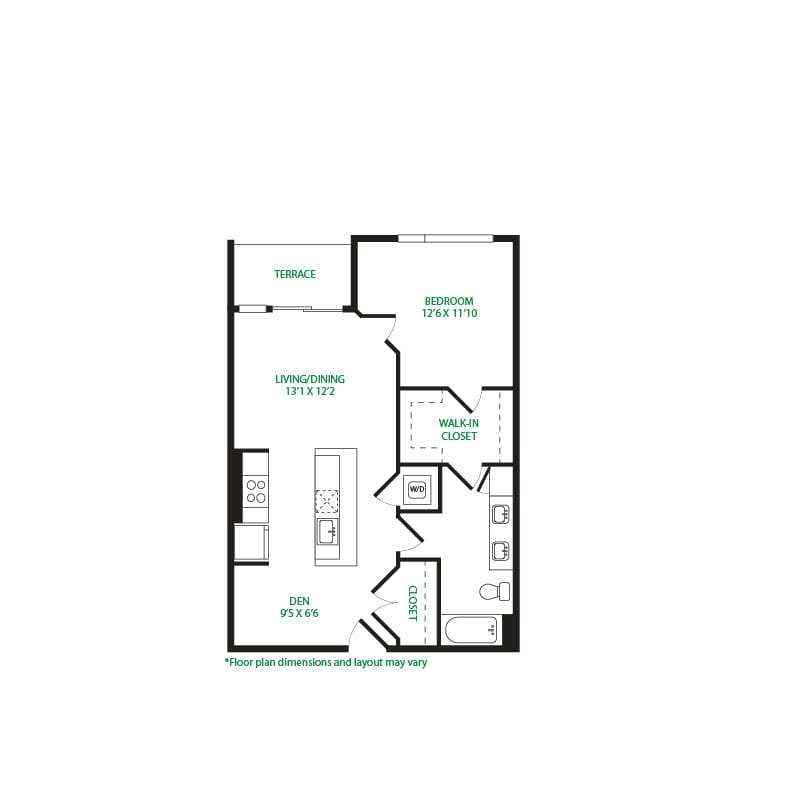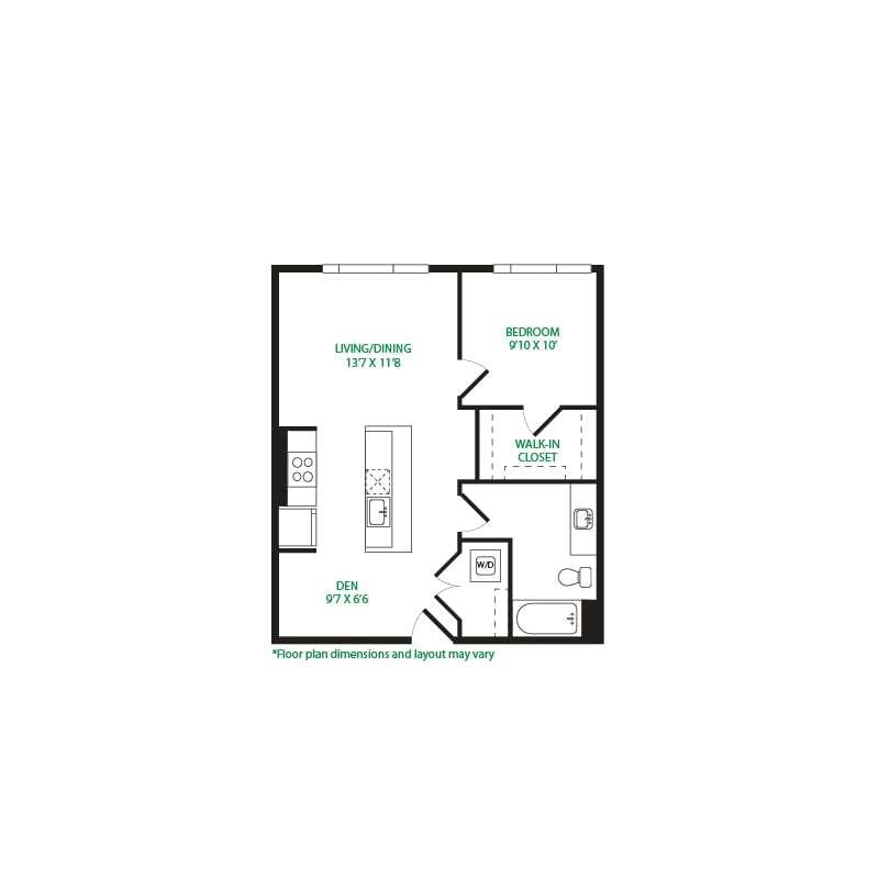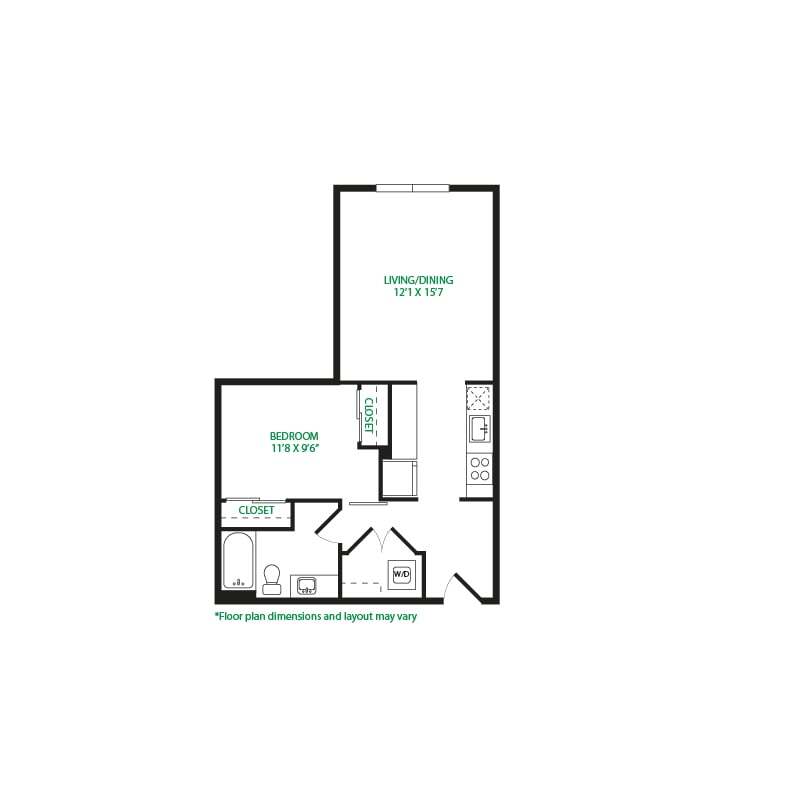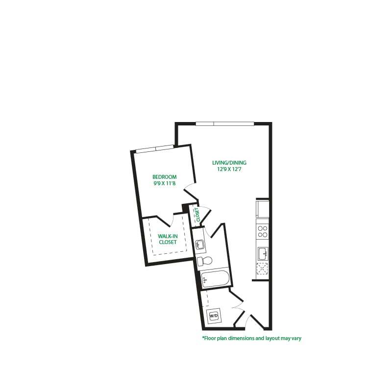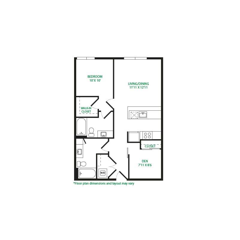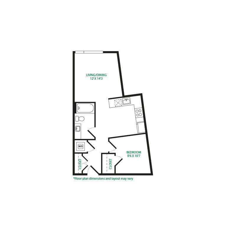 Modelo de apartamento: Studio 3SLlame para PreciosEstudio, 1 Baño, 570 sq ftNo Disponible![]()