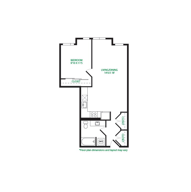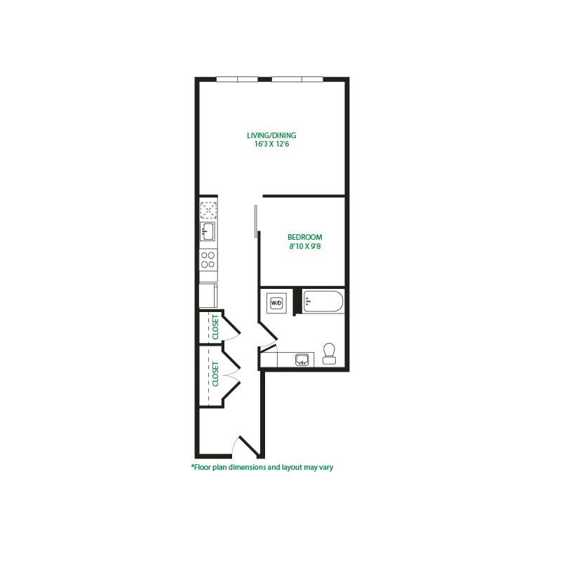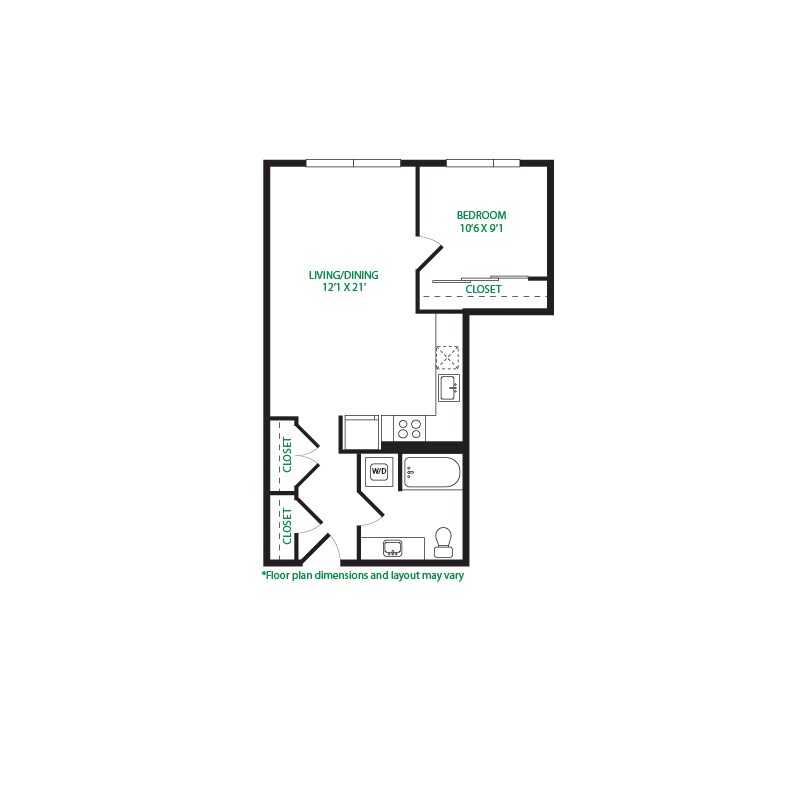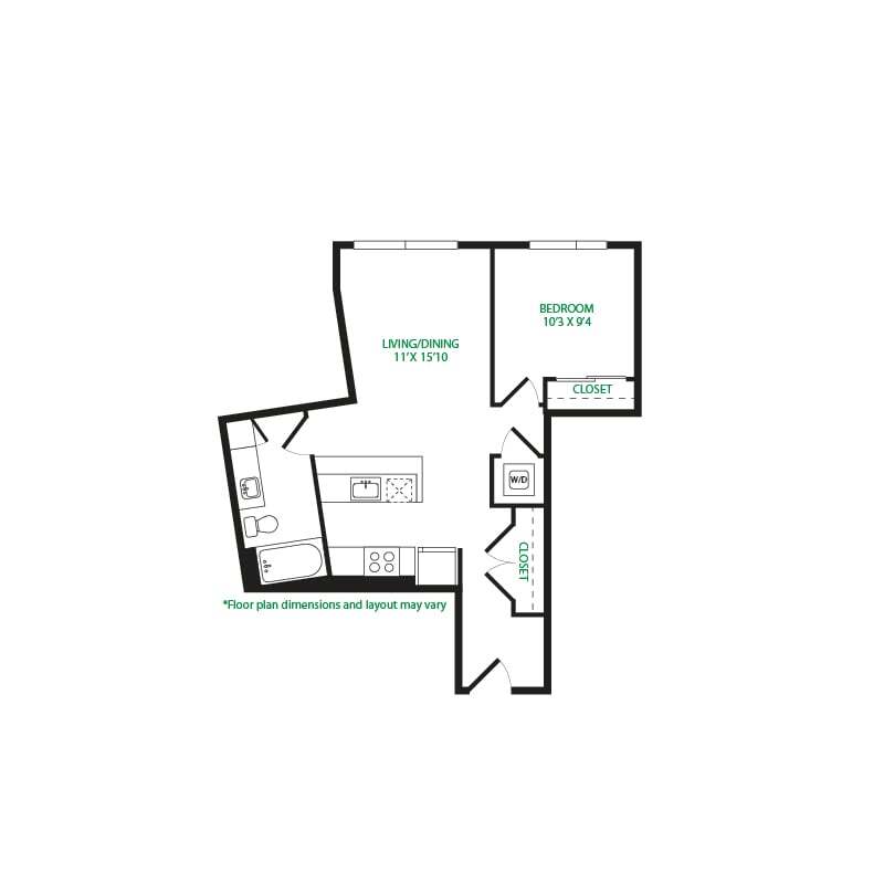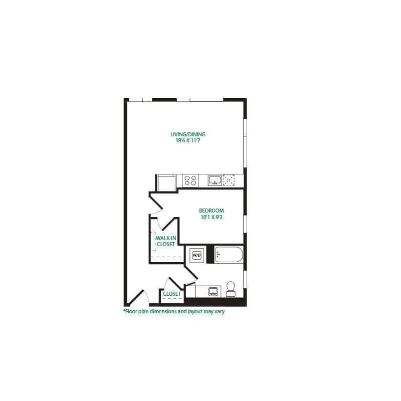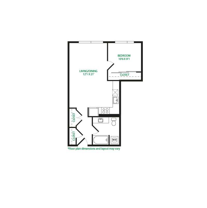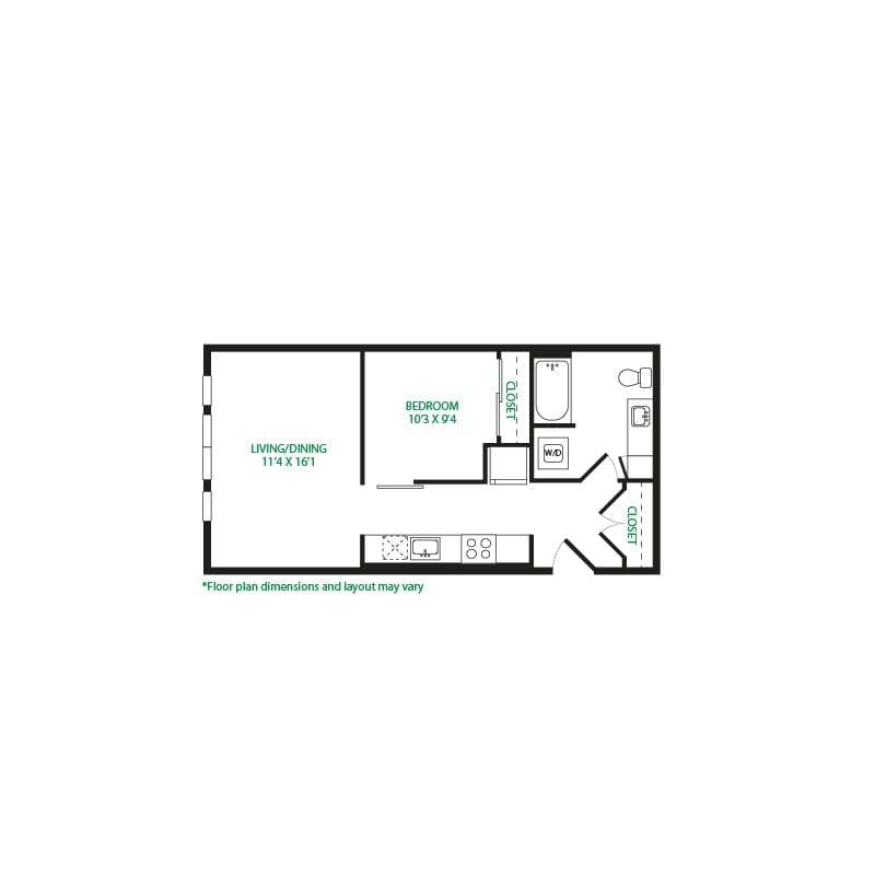Estudio, 1 Baño, 570 pies²Galería del Modelo