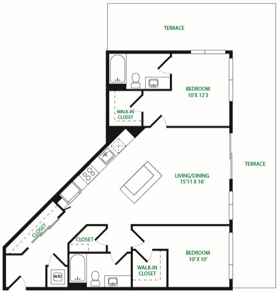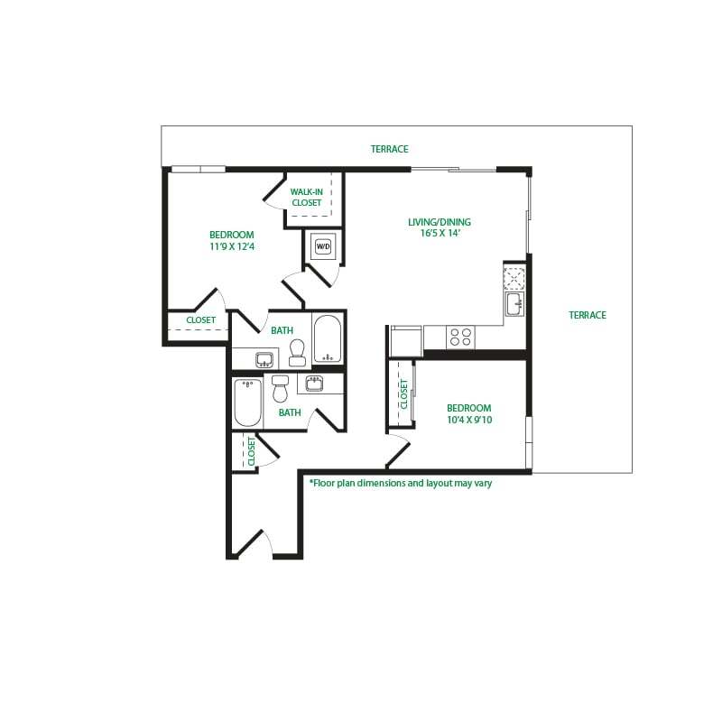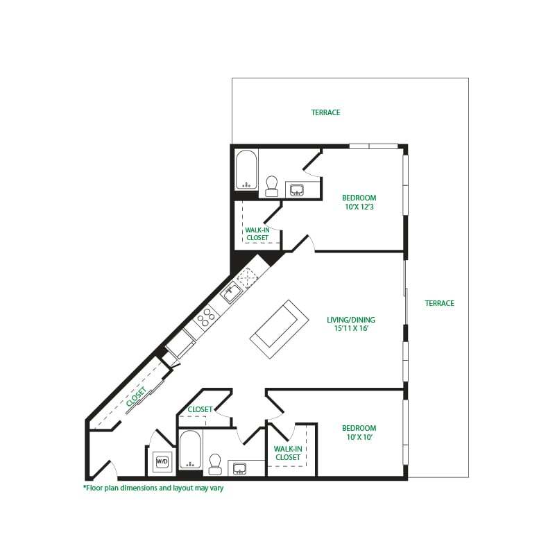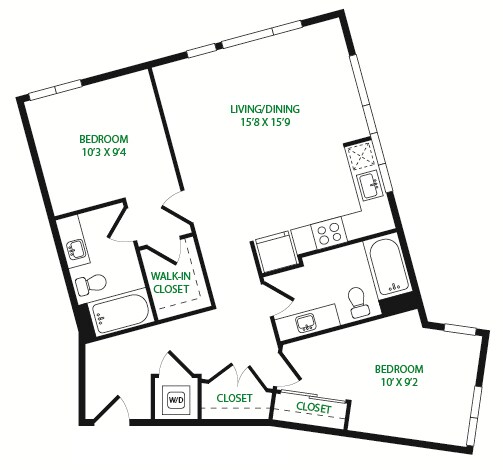 Estírate en apartamentos que son más grandes que el promedio de apartamento. Los nuestros vienen en todo tipo de formas y tamaños, desde estudios hasta apartamentos de una habitación, casas adosadas y mucho más. Simplemente elige tu plano de planta, elige tu personalidad (¿brillante y ventilado? ¿Oscuro y a estado de ánimo?) y empaca tus bolsos.