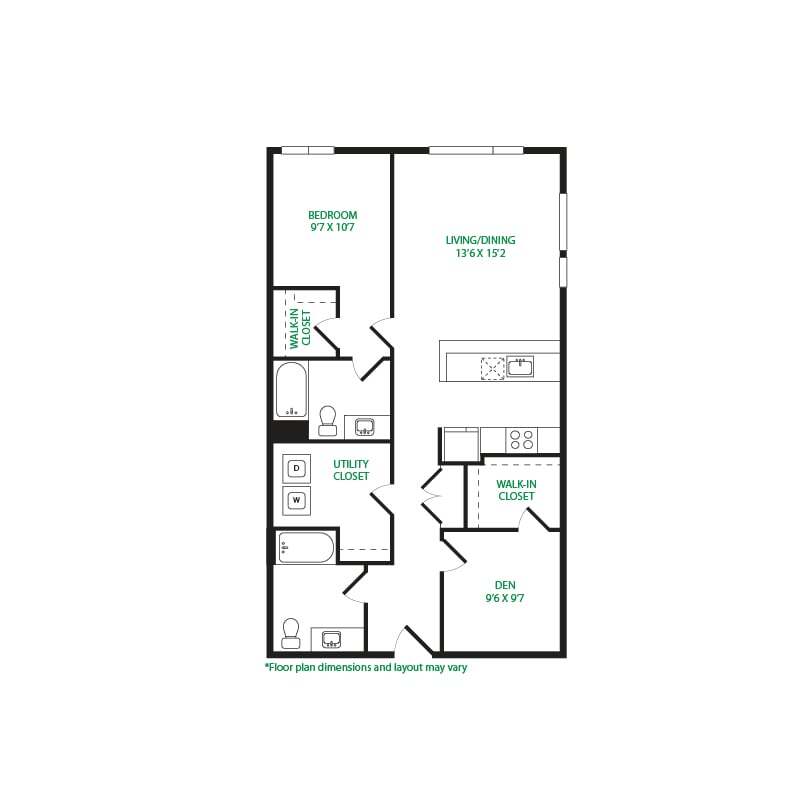 1 Dormitorio, 1 Baño, 603 pies²Disponible AhoraGalería del Modelo