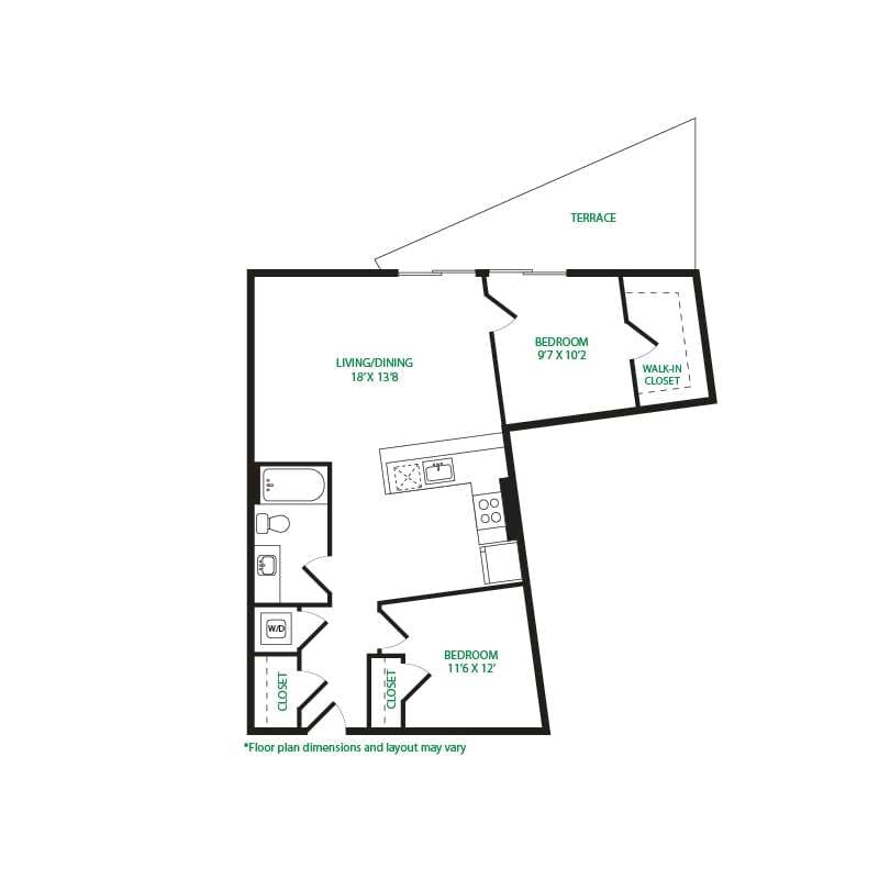Modelo de apartamento: Open 1x1 0.2$1,7511 Dormitorio, 1 Baño, 602 sq ftDisponible Ahora![]()