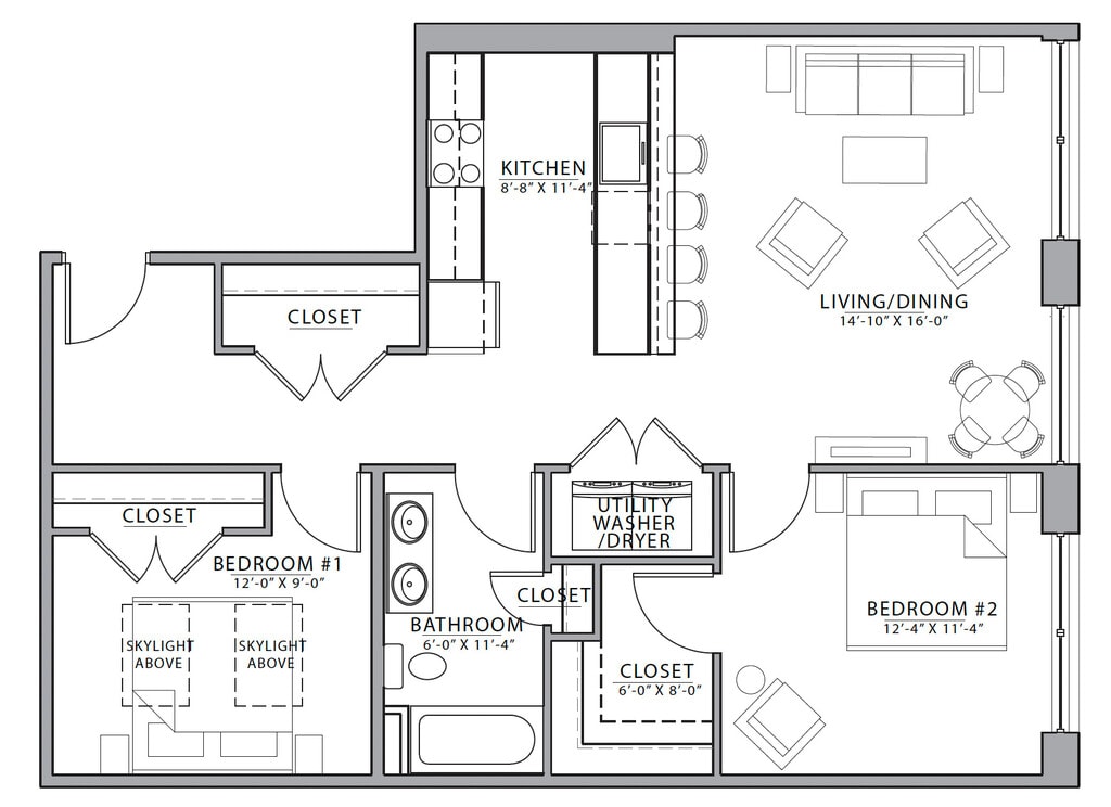 2 Dormitorios, 1 Baño, 952 pies²Galería del Modelo