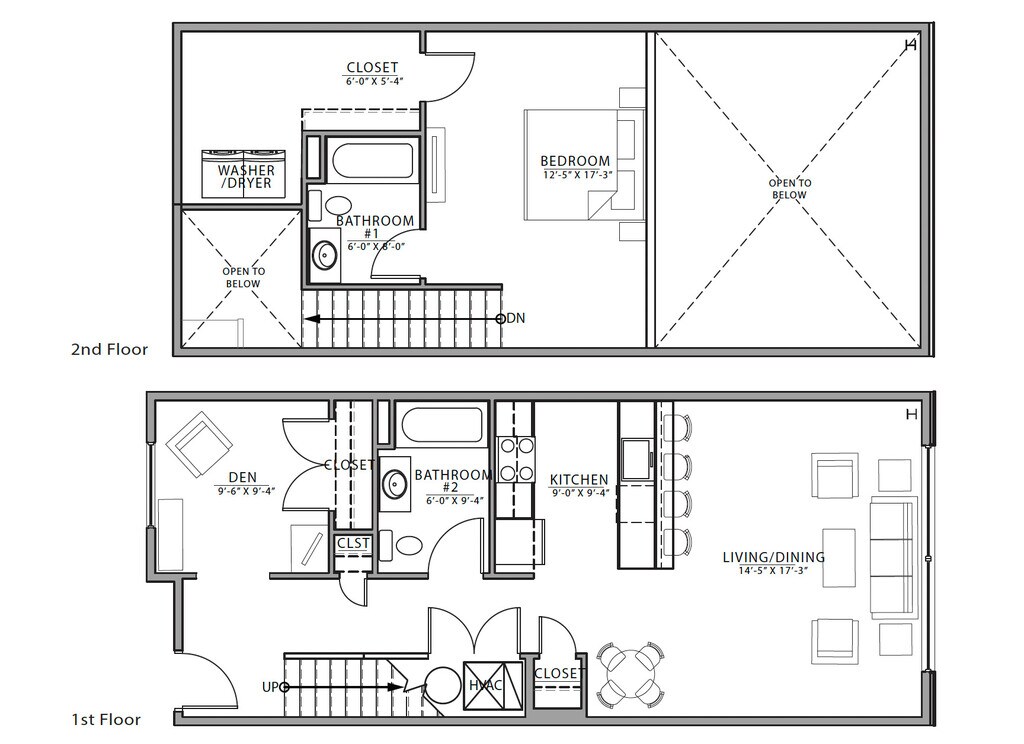 1 Bedroom + Den , 2 Bathroom Bi-Level - Plano 1 2 Dormitorios