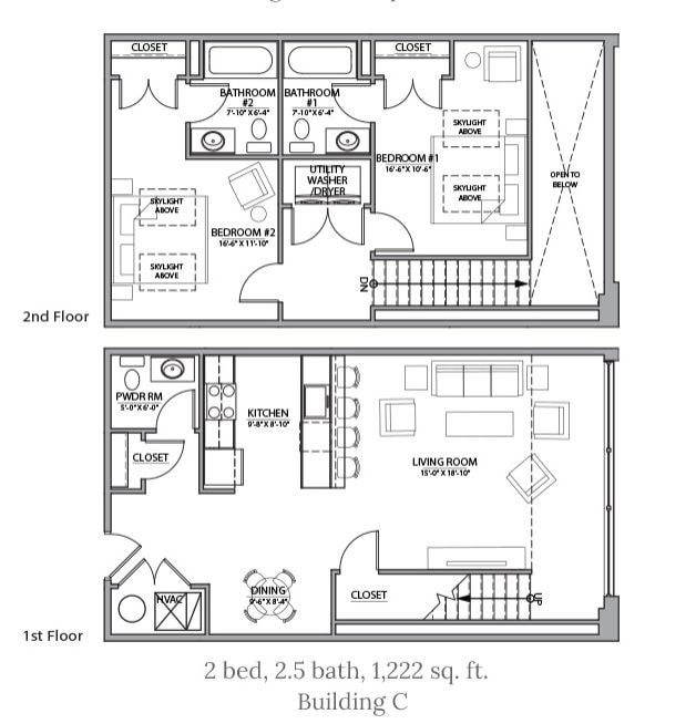 2 Bedroom, 2.5 Bath Bi-Level - Plano 1 2 Bedroom 1 Bath - Bldg D, Exposed Brick
