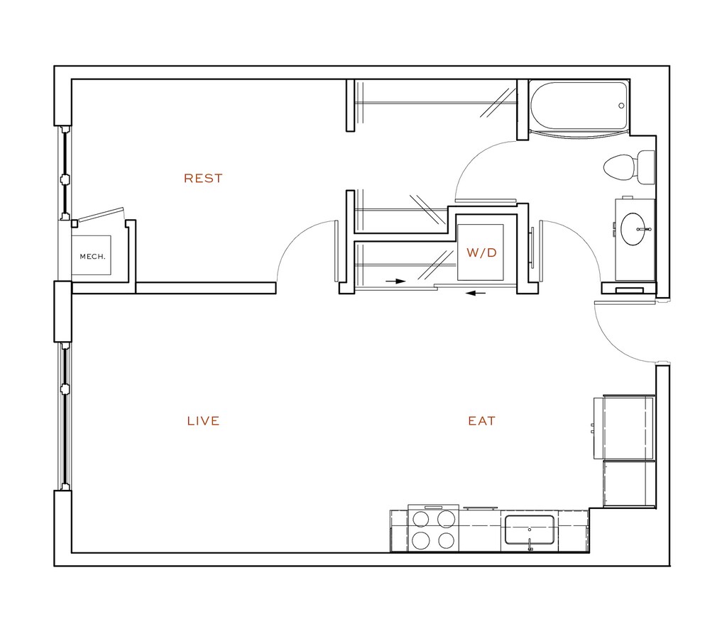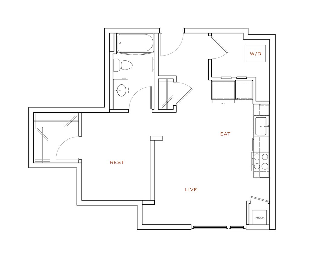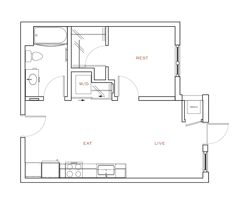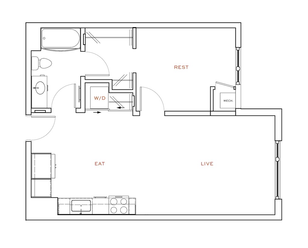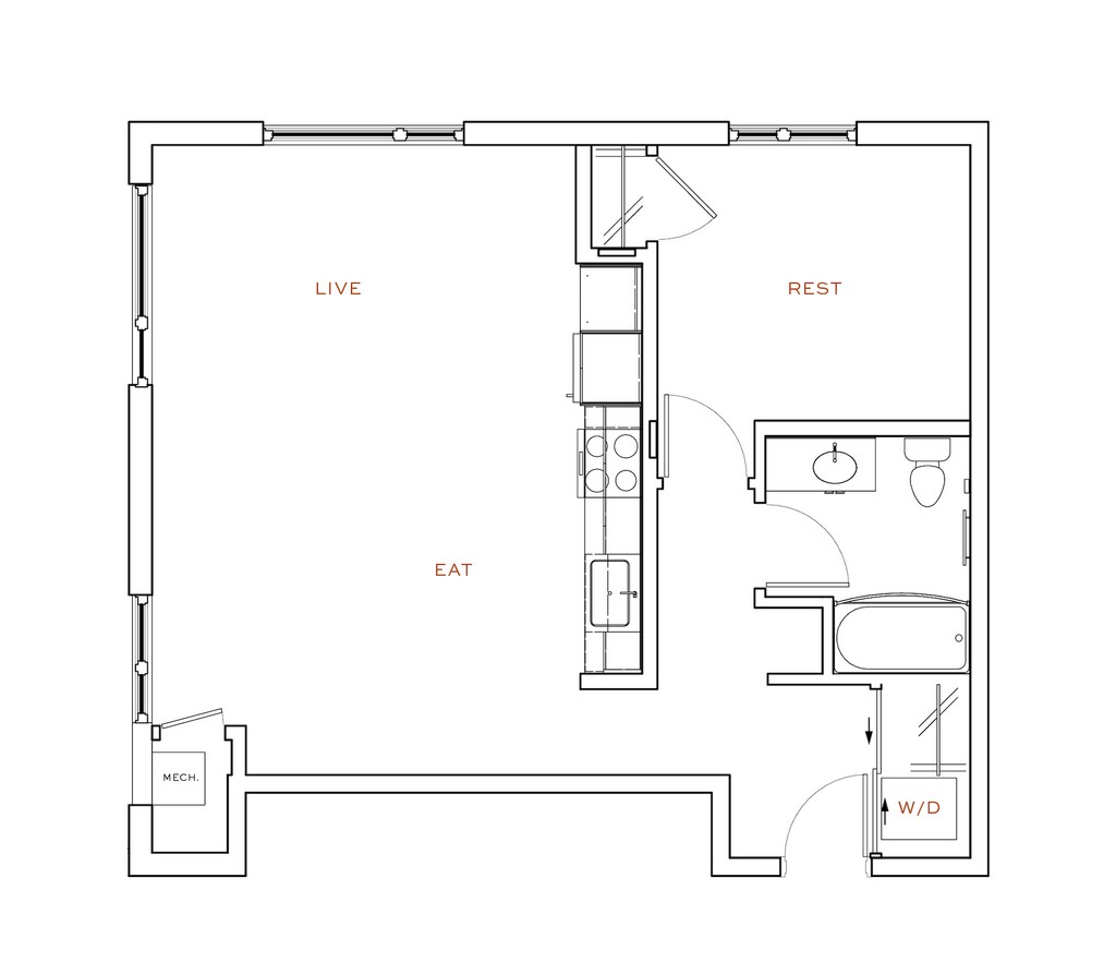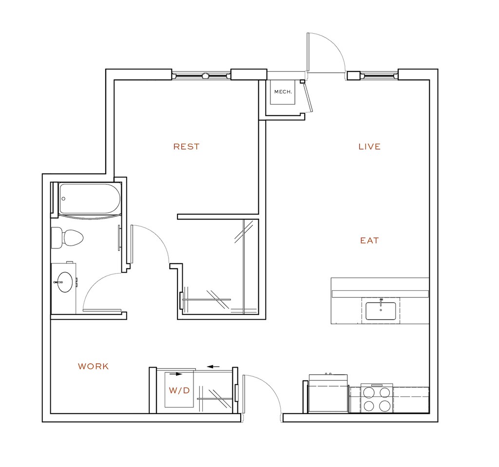 Estudio, 1 Baño, 443-497 pies²Disponible AhoraGalería del Modelo