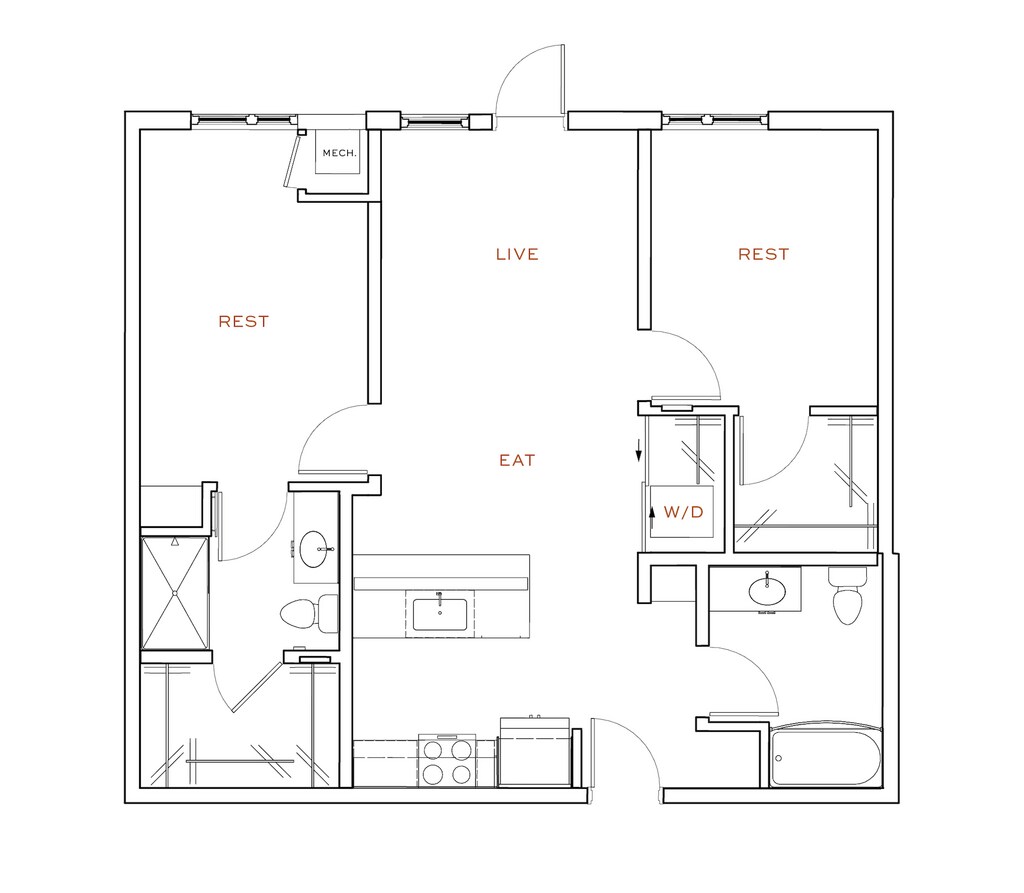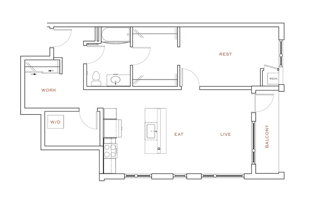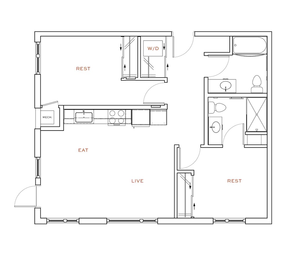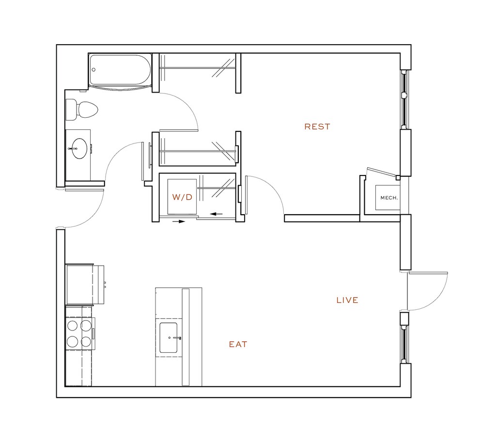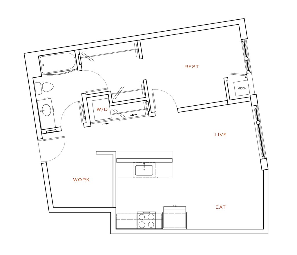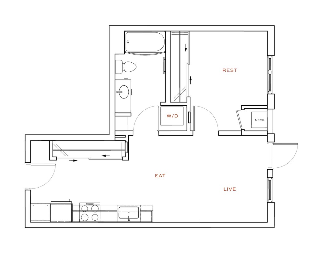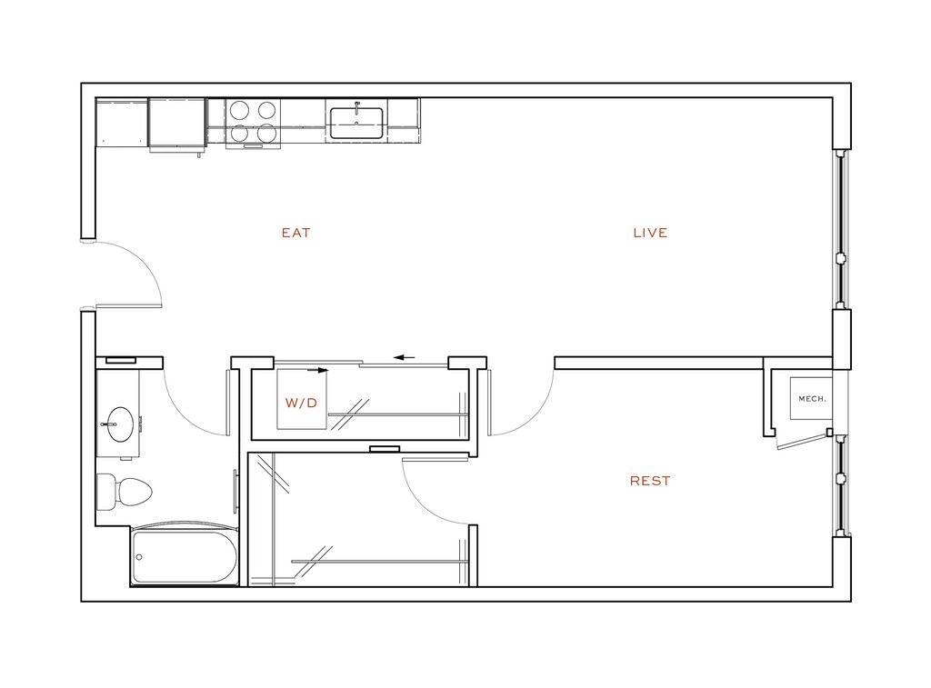 Estudio, 1 Baño, 443-497 pies²Disponible AhoraGalería del Modelo