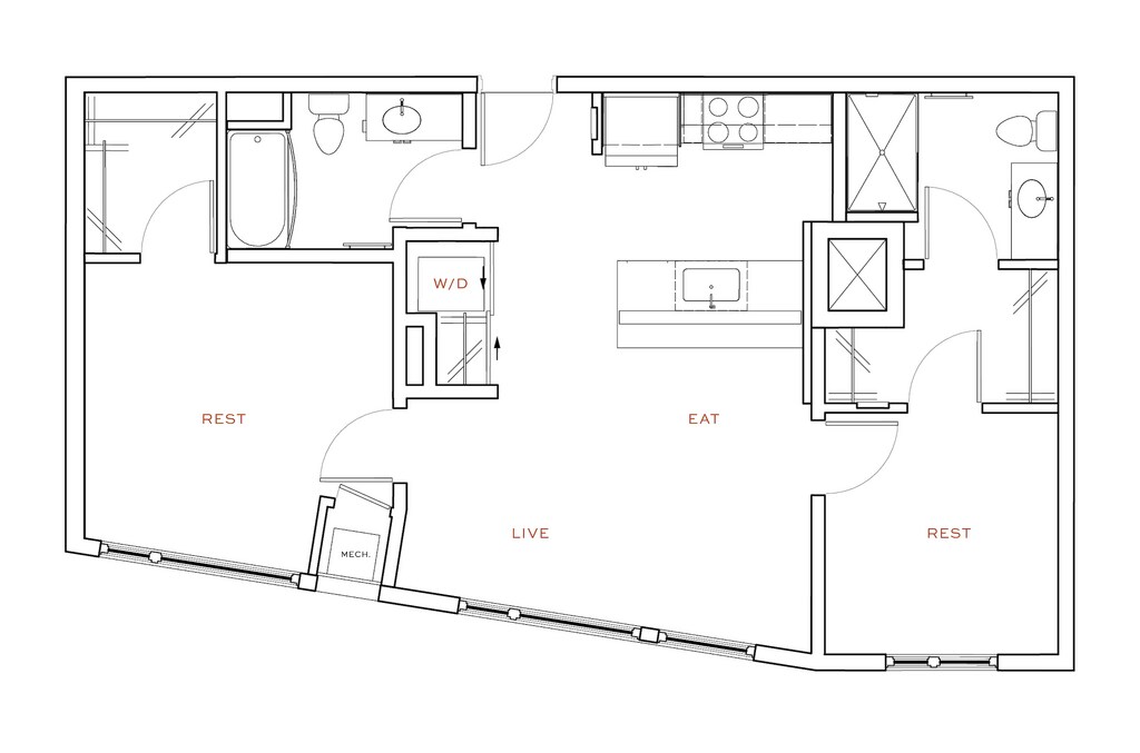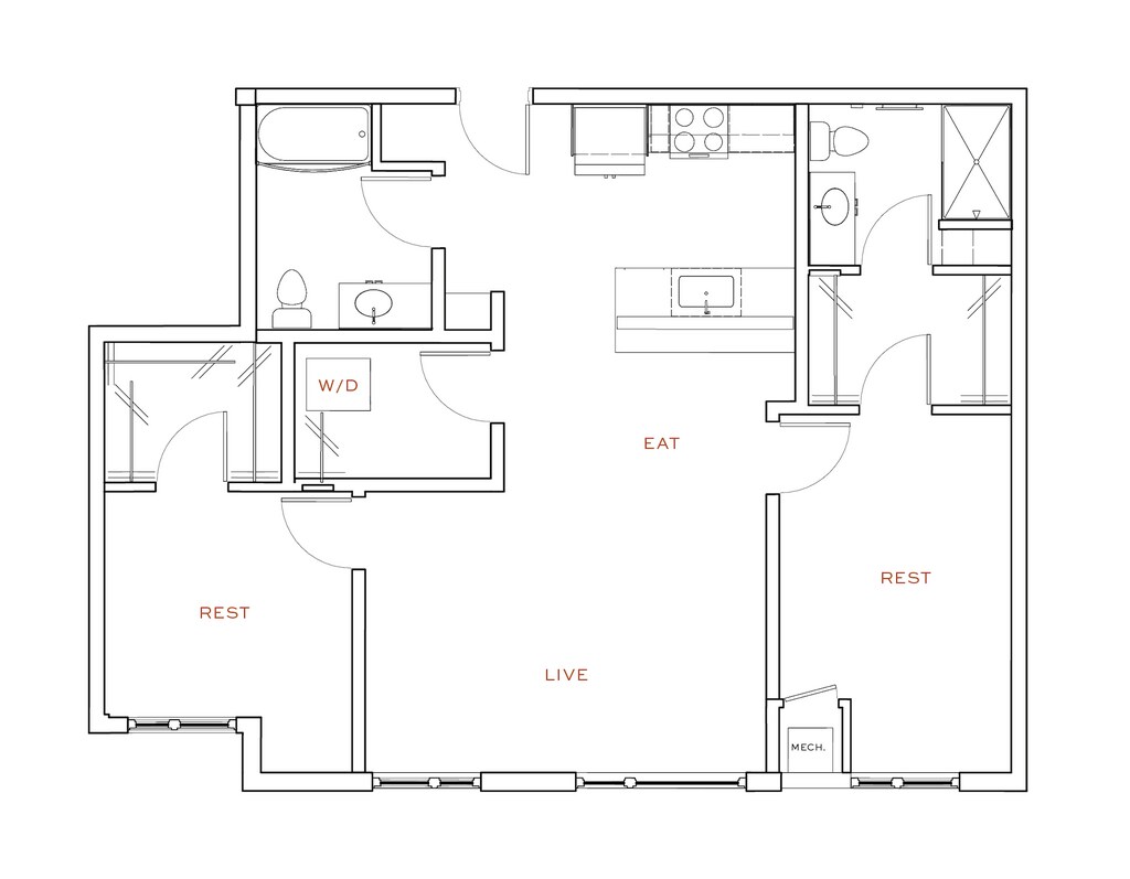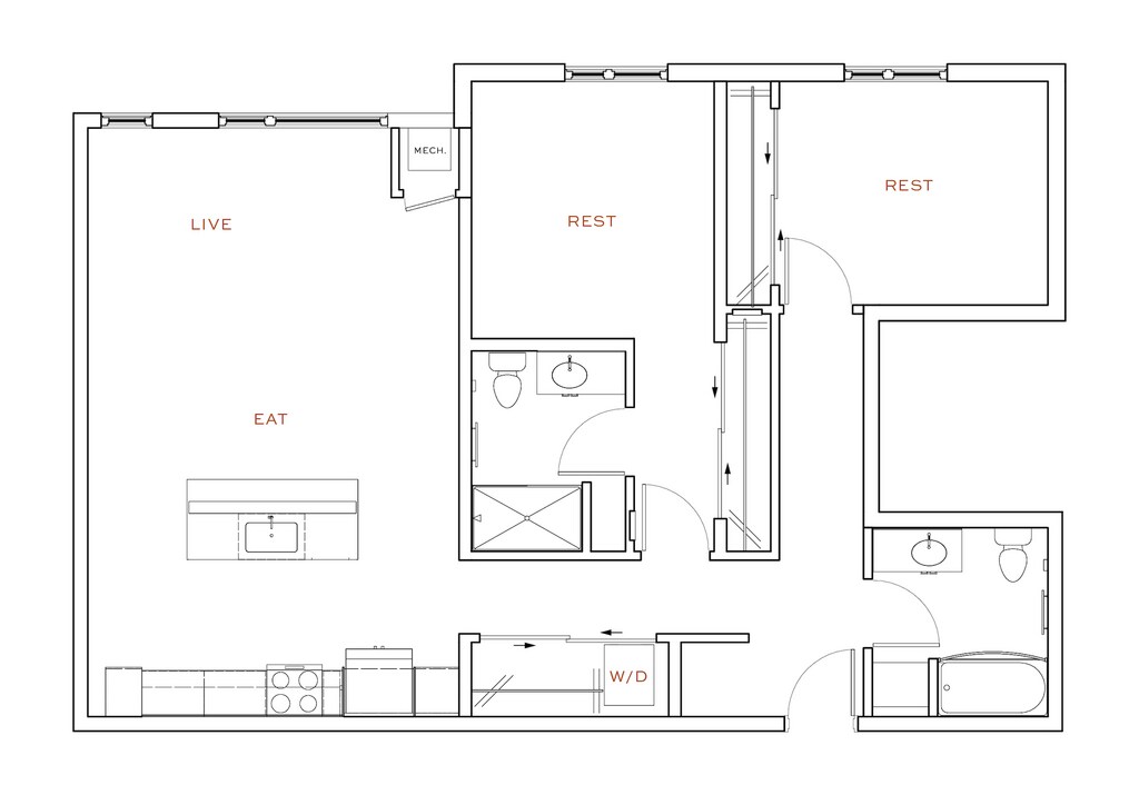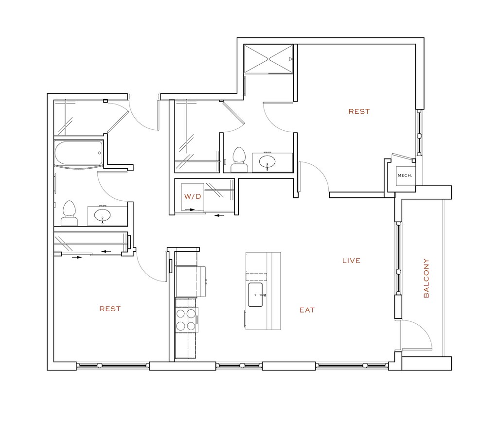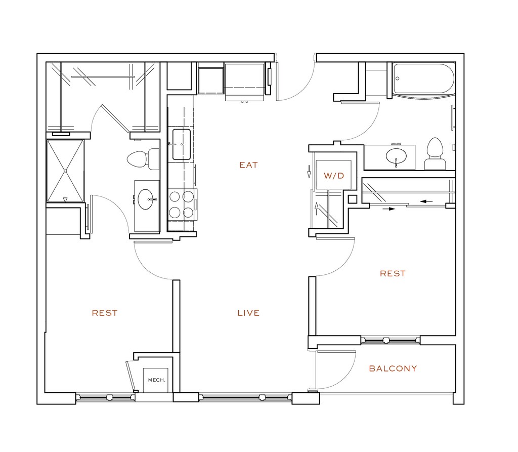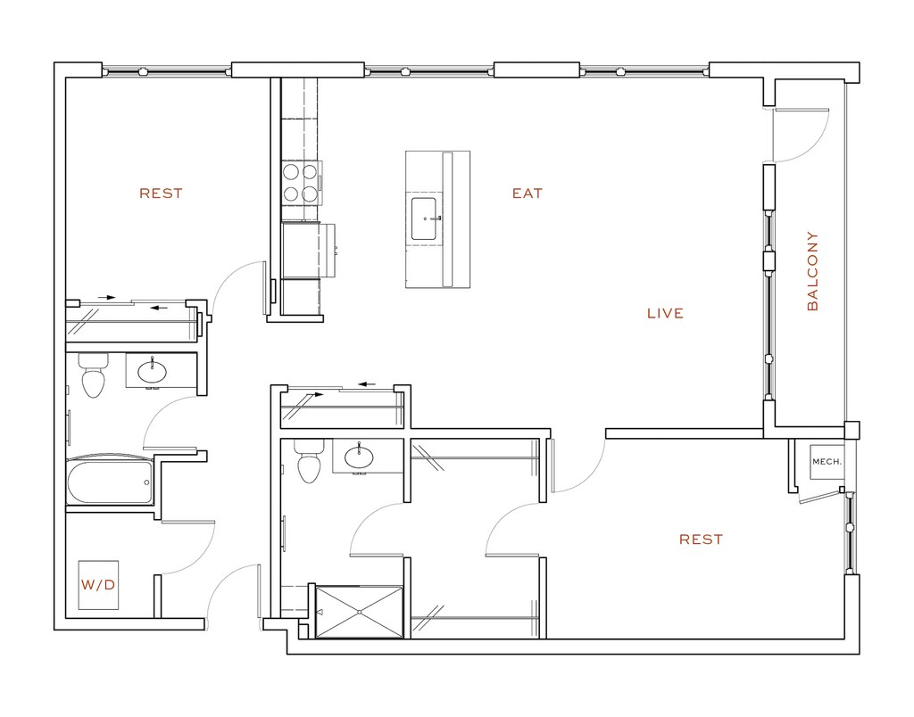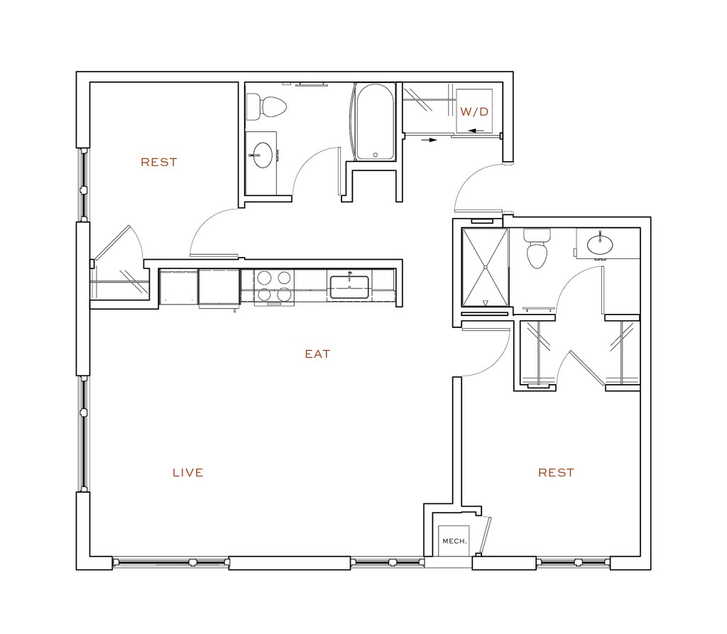 Estudio, 1 Baño, 443-497 pies²Disponible AhoraGalería del Modelo