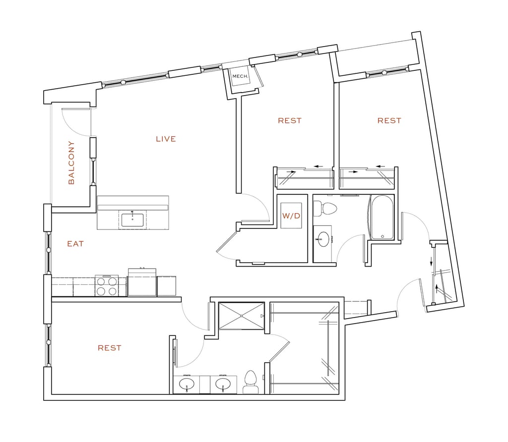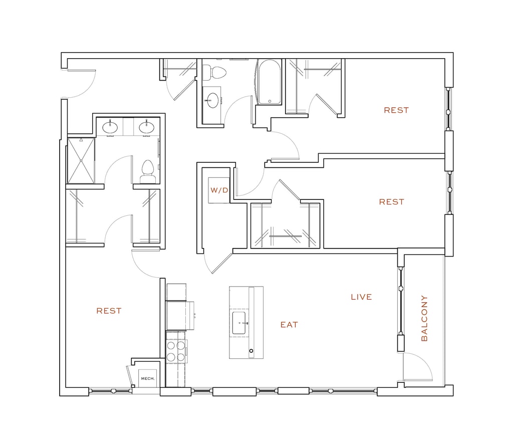 Modelo de apartamento: A3Desde $1,950Estudio, 1 Baño, 570-574 sq ftDisponible Ahora![]()