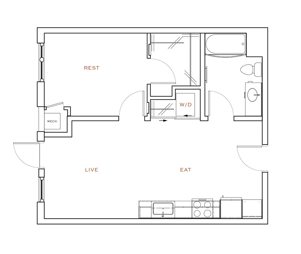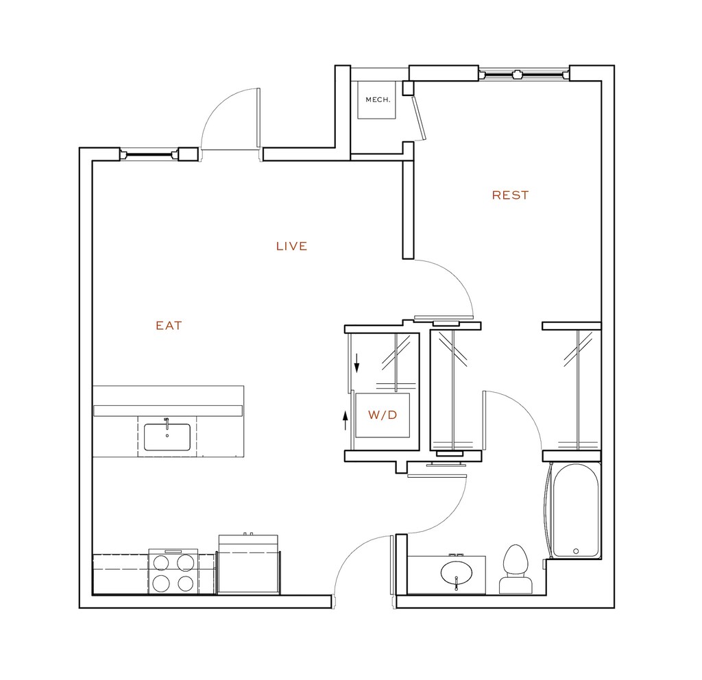Estudio, 1 Baño, 570-574 pies²Disponible AhoraGalería del Modelo