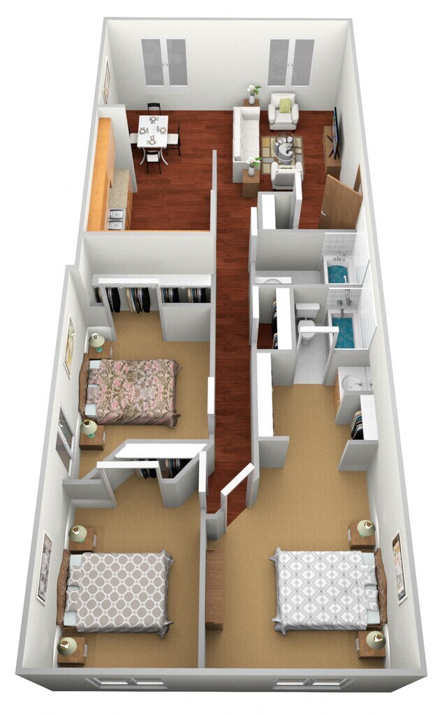 Modelo de apartamento: 2 Bedroom, 2 Bath$1,0052 Dormitorios, 2 Baños, 1057 sq ftNo Disponible2 Bedroom, 2 Bath - Plano 1 3 Dormitorios
