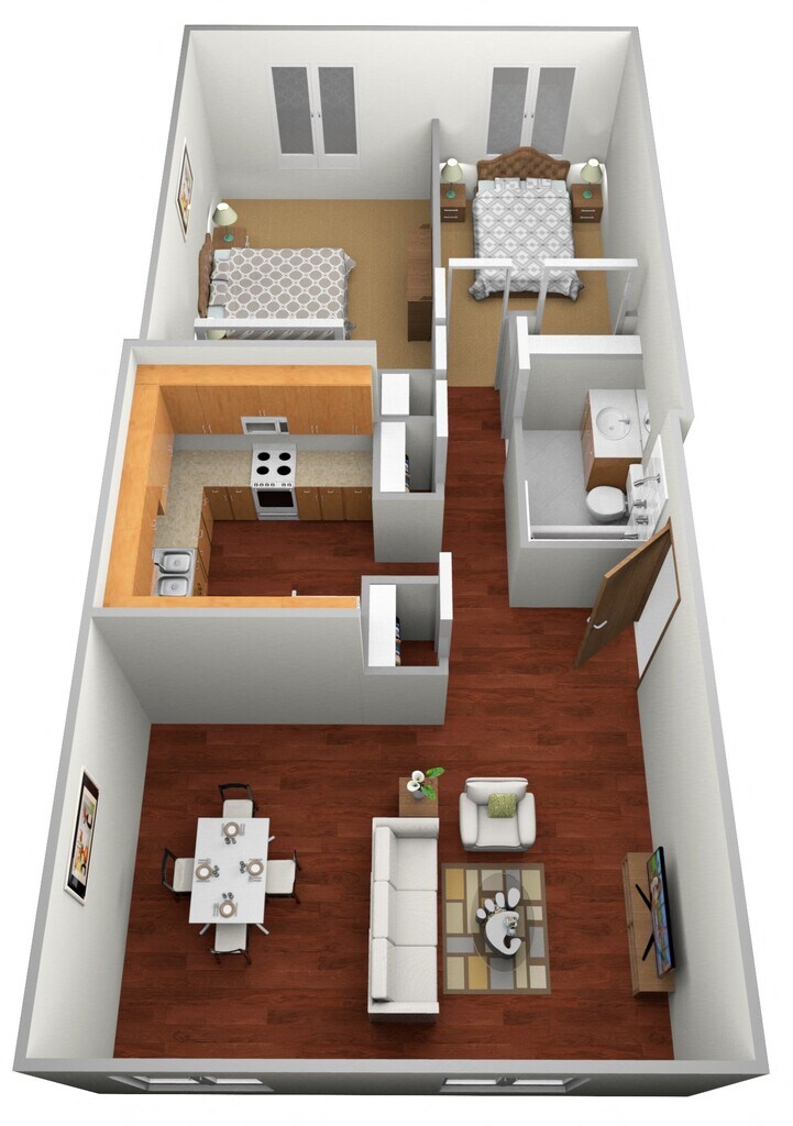 Modelo de apartamento: 1 Bedroom, 1 Bath$8951 Dormitorio, 1 Baño, 689 sq ftNo Disponible1 Bedroom, 1 Bath - Plano 1 2 Dormitorios