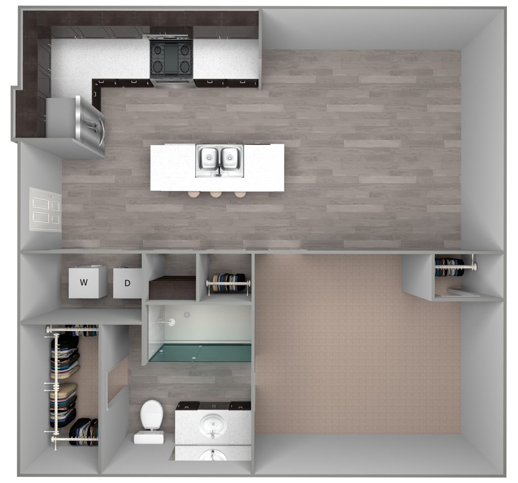 1 Dormitorio, 1 Baño, 739 pies²El más grandeEsta opción tiene las unidades más grandes para este modeloGalería del Modelo