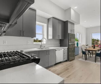 The Jade of Palms es un nuevo complejo de estilo boutique de 15 apartamentos cuidadosamente diseñados con pisos excelentes, techos altos y enormes ventanas en todo el lugar para disfrutar de abundante luz natural. Los diseños de los apartamentos de plano abierto tienen cocinas con encimeras de cuarzo, excelentes electrodomésticos de acero inoxidable, y las áreas de estar y comedor que conducen a los balcones privados. Las habitaciones son amplias con vestidores, los baños tienen accesorios de primera calidad y accesorios. Los apartamentos tienen aire acondicionado y calefacción centralizados en todo el lugar, armarios de almacenaje adicional y lavadoras y secadoras. Los lugares de estacionamiento se ofrecen en un seguro garaje privado. The Jade of Palms es un complejo completamente seguro con entrada controlada, una sala recreativa de uso común para jugar al futbolín y recibir invitados, y una hermosa terraza en la azotea compartida para hacer divertidas barbacoas con los residentes o otros residentes. Edificio con alquiler controlado. Ubicado en Palms, estás ubicado cerca de todo LA y también a una caminata de distancia de increíbles restaurantes, cafeterías y los mercados de productores de Motor Ave, uno de los mejores de LA. Camina o anda en bicicleta hasta el centro de Culver City o The Platform. ¡Toma la línea Expo a cualquier otro lugar al que desees ir! No se puede superar esta increíble ubicación.