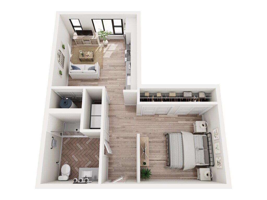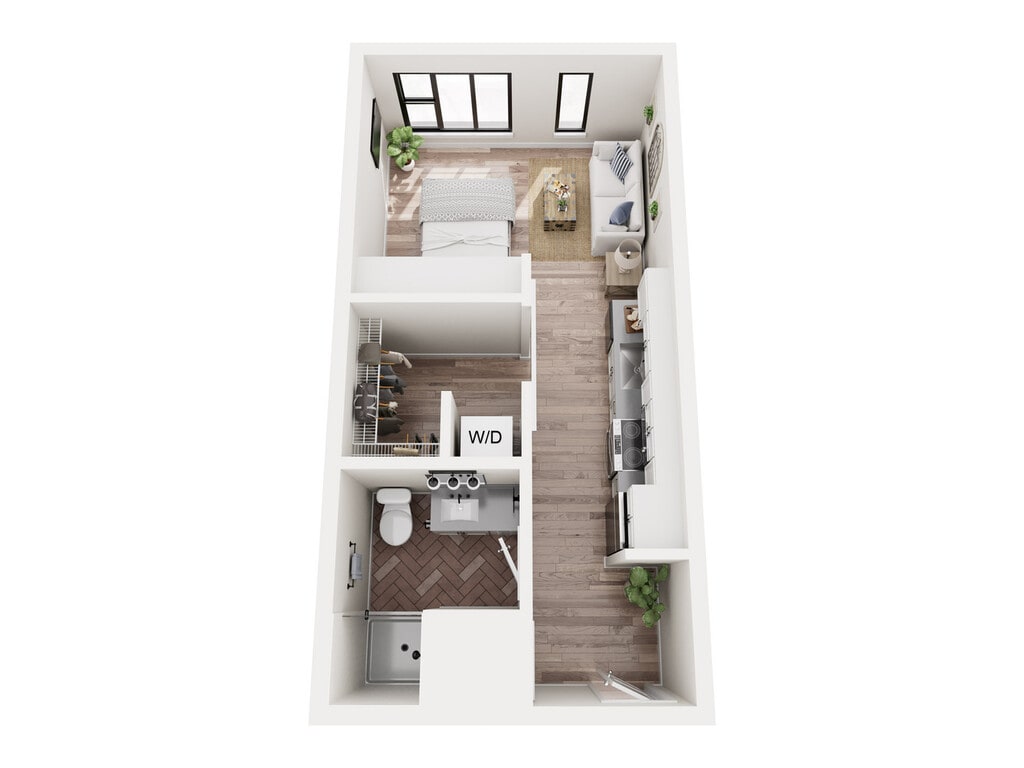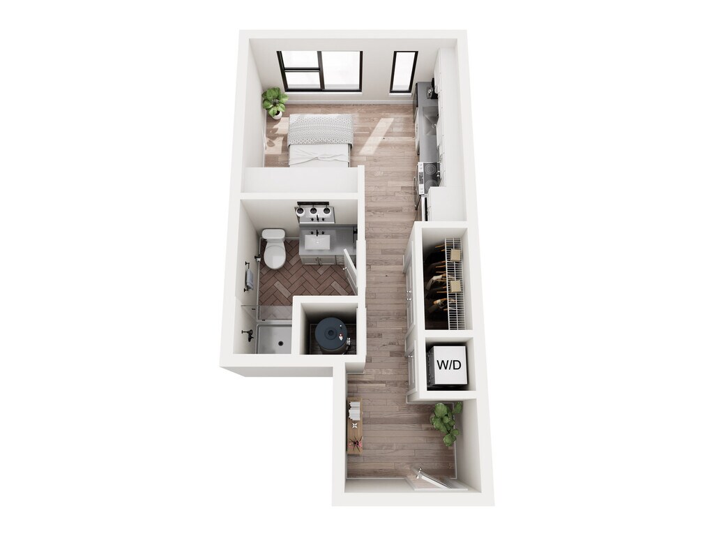 Heaton - Plano 2 Unidad de apartamento: A-308Modelo de apartamento: HeatonDesde $1,195Estudio, 1 Baño, 393 sq ftDisponible Ahora![]()