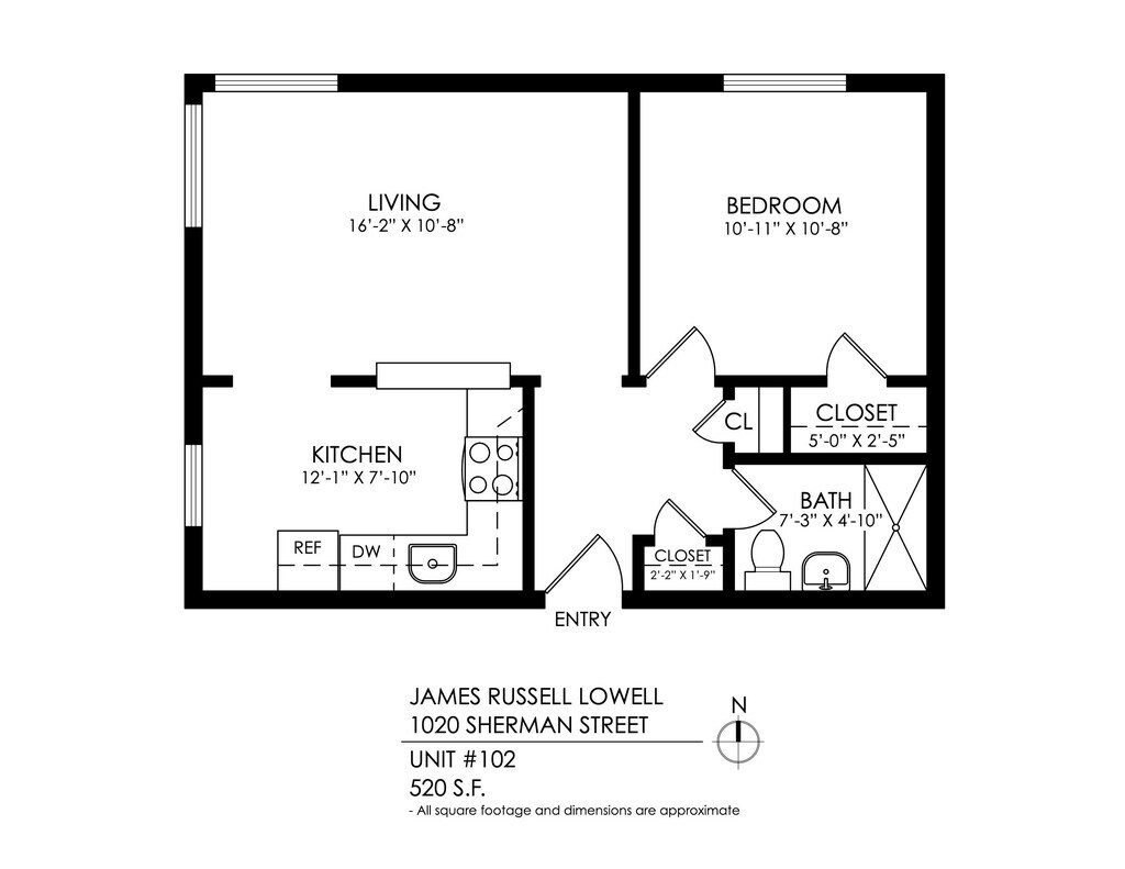 Unidad: 102 - Imagen 10 Unidad de apartamento: 106Modelo de apartamento: One Bedroom, One Bath1 Dormitorio, 1 Baño, 485 sq ftDisponible March 21, 20261 Bedroom-Hardwood