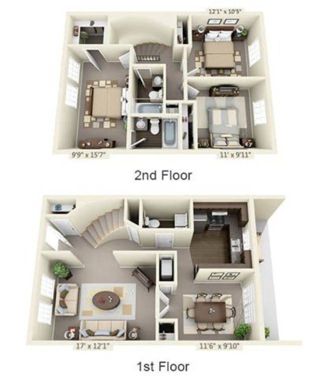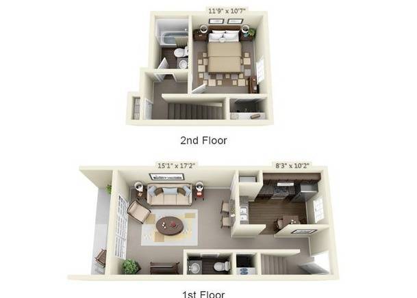 Modelo de apartamento: One Bedroom TownhouseDesde $1,2491 Dormitorio, 1.5 Baños, 850 sq ftNo Disponible![]()