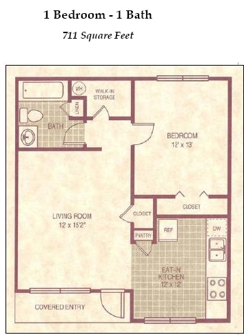 Modelo de apartamento: Model 1A1 Dormitorio, 1 Baño, 725 sq ftNo Disponible![]()