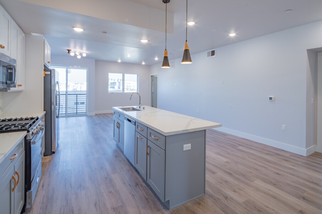 NUEVA CONSTRUCCIÓN ALQUILADO GRATIS POR UN MES*** Tenemos diferentes planos de planta que podemos mostrarle Jasmine Luxury Apartments, que cuenta con un moderno edificio de cinco pisos con dos pisos de estacionamiento subterráneo. Las prácticas amenidades incluyen almacenamiento para bicicletas, un gimnasio con equipo profesional y televisores. Una sala de recreación con sala de televisión, billar, hockey aéreo y cocina pequeña también hecha para disfrutar para todos los inquilinos. Los suculentos jardines en la parte delantera y trasera del edificio, equipados con un sistema de riego por goteo para evitar el exceso de residuos de agua, crean una estética hermosa. Los hermosos diseños personalizados de cada unidad incluyen una sala de estar, un comedor y una cocina totalmente equipada con electrodomésticos de acero inoxidable, acompañada de impresionantes dormitorios y baños primarios y secundarios. Muchos de nuestros apartamentos cuentan con planos luminosos y amplios, iluminación empotrada, techos altos y balcones privados.* Nuestras cocinas cuentan con gabinetes personalizados en blanco/gris con encimeras de cuarzo de primera calidad con diseño de mármol y electrodomésticos de acero inoxidable. Caja de seguridad de paquete Amazon en el vestíbulo Todas las unidades tienen su propio calentador de agua sin tanque Navien, además de múltiples espacios de almacenamiento que incluyen varios vestidores y armarios de abrigo. Nuestro edificio cuenta con pisos laminados de chapa de madera en todo el edificio y lavadoras y secadoras apiladas IN UNIT. La seguridad es una prioridad, el acceso a la puerta principal se controla con un sistema de intercomunicación digital, instalaciones completamente cerradas con cámaras de seguridad que supervisan todas las áreas comunes y el exterior del edificio, y servicio de mantenimiento de guardia. Los cargadores para automóviles eléctricos están disponibles a solicitud. ** *Las unidades 101, 102, 201, 301 y 401 no tienen balcones **Los cargadores eléctricos para automóviles están disponibles por un cargo adicional y por orden de llegada *** Basado en el crédito y la solicitud aprobados No hay alquiler de un mes gratis en la unidad n.o 201