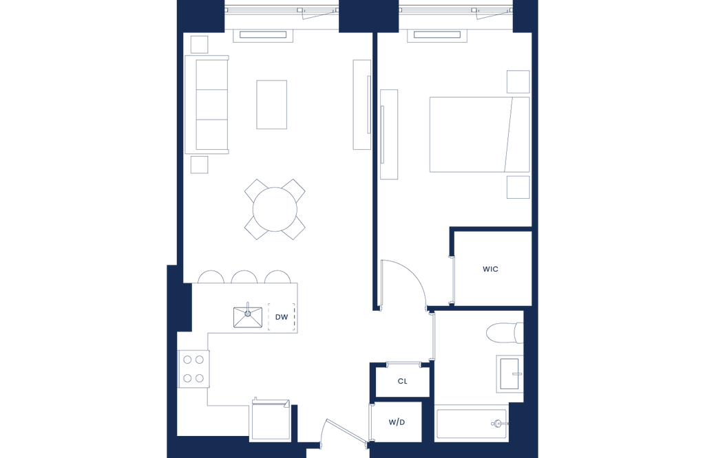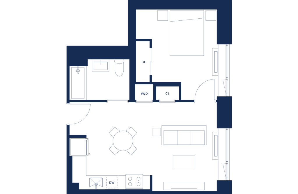 Studio Classic West Floors 2-12 - Plano 1 Unidad de apartamento: W1105Modelo de apartamento: Studio Classic West Floors 2-12Estudio, 1 Baño, 458 sq ftDisponible AhoraStudio Classic East Floors 3-8