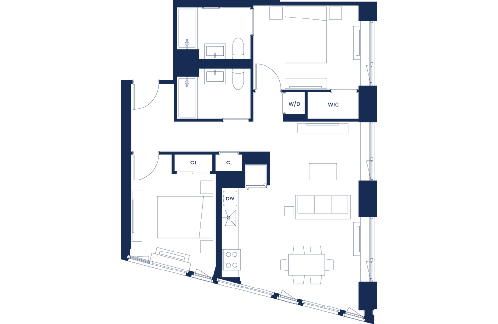 Modelo de apartamento: 1 Bedroom Classic West Floors 2-121 Dormitorio, 1 Baño, 666-746 sq ftDisponible Ahora![]()