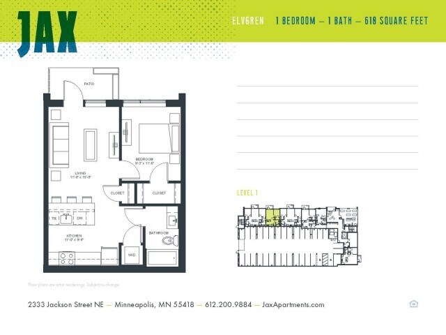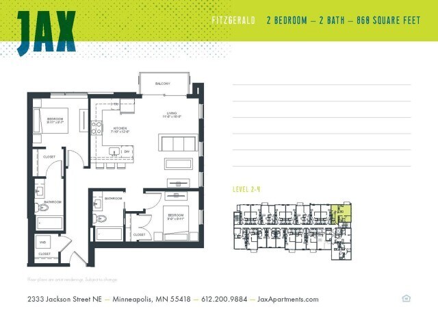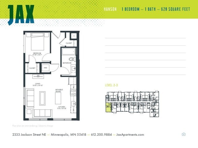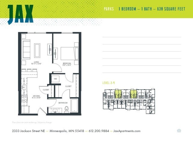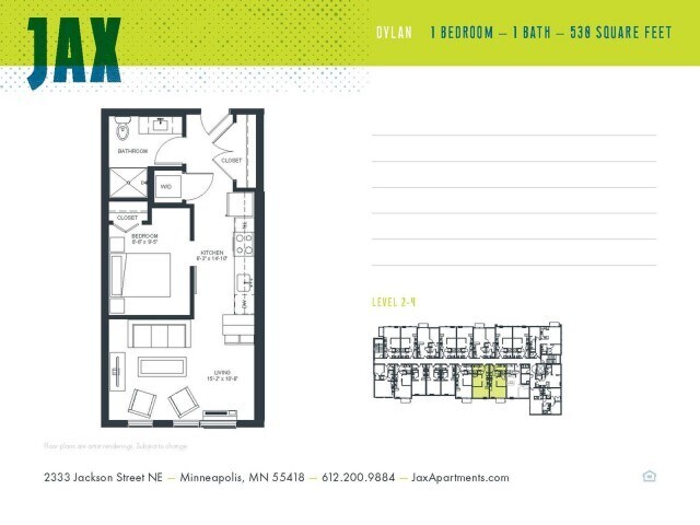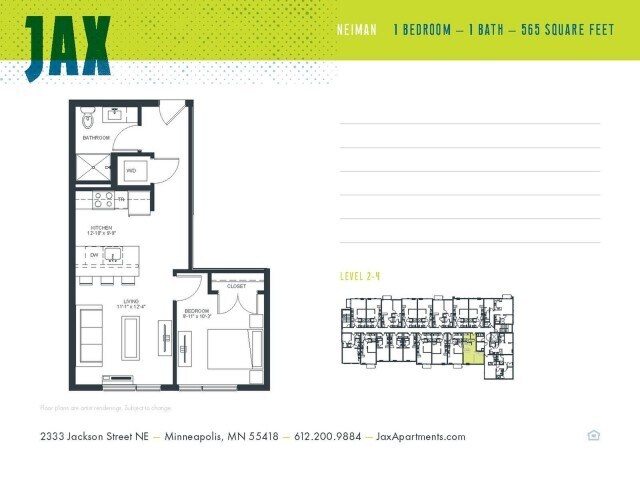 Vida moderna Northeast Minneapolis - Nuestros hermosos, modernos y elegantes apartamentos de una habitación ofrecen electrodomésticos de acero inoxidable y termostatos con acceso remoto. Los altos techos con amplios ventanales ofrecen una gran cantidad de luz en todo el apartamento. Las comodidades del edificio incluyen una pintoresca terraza en la azotea equipada con una brasero y parrilla, un estudio de arte de 700 ft², un gimnasio en el lugar disponible las 24 horas los 7 días de la semana, estacionamiento en garaje con calefacción, almacenaje de bicicletas en el lugar, un salón social de lujo y servicio de entrega segura de paquetes en la habitación. JAX está ubicado en el distrito de arte históricamente diverso de Northeast Minneapolis, que te ofrece todos los días acceso a una amplia variedad de gastronomías culturales, galerías de arte, eventos, vida nocturna y mucho más. Cuando sientas ganas, puedes caminar hasta Central Avenue y buscar comida Thai, mexicana o platos del Medio Oriente. Ve en bicicleta hasta Jackson Square Park para disfrutar de un poco de sol y softball. O dirígete a orillas del río para disfrutar de unas bebidas con amigos en Betty Danger’s. Luego, ven a casa al elegante estilo de vida de apartamento que te ofrece la comodidad moderna, mientras ayudamos al medioambiente. (RLNE4685165)