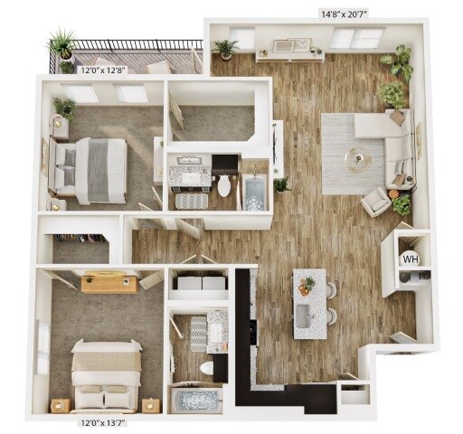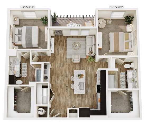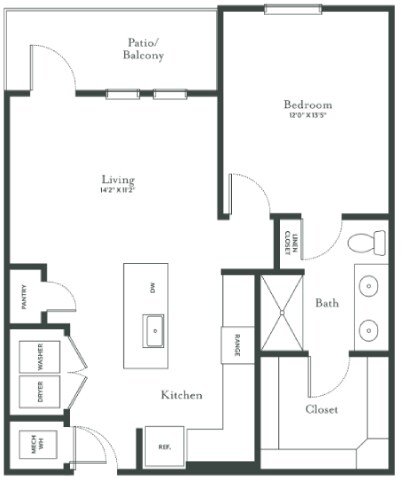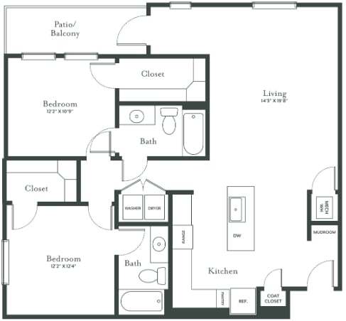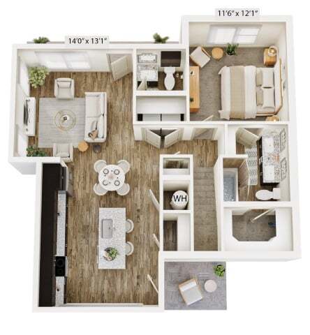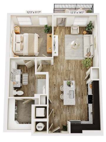 Modelo de apartamento: A2Desde $1,2001 Dormitorio, 1 Baño, 758 sq ftDisponible Ahora![]()
