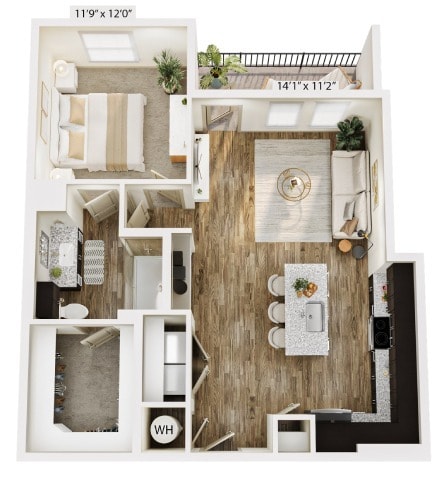 Modelo de apartamento: A10Desde $1,3151 Dormitorio, 1 Baño, 931 sq ftDisponible Ahora![]()