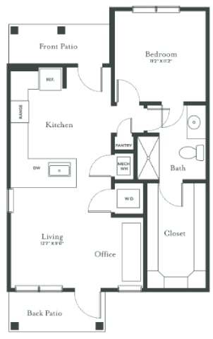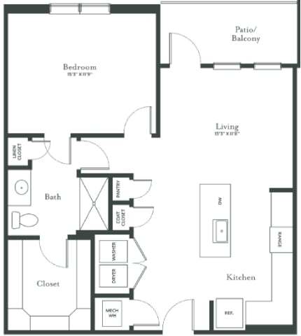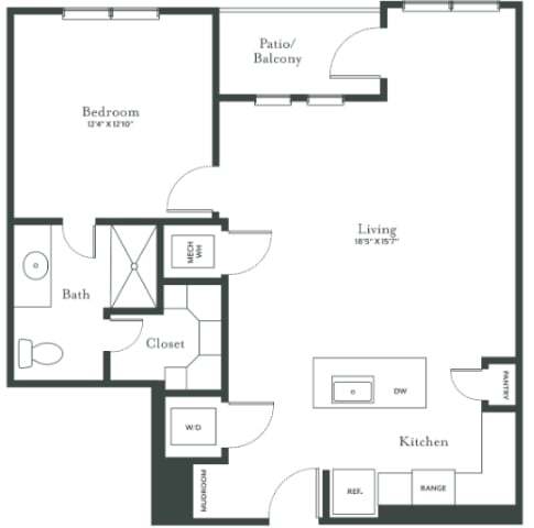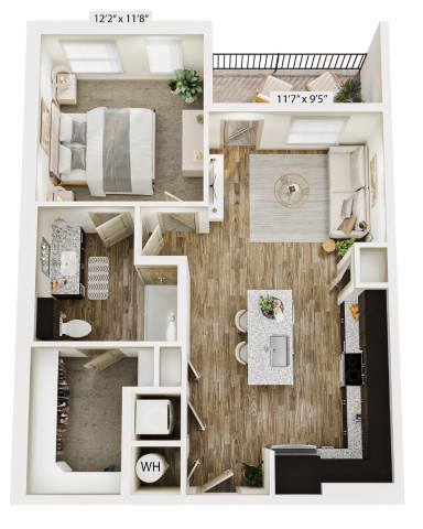 Modelo de apartamento: A2aDesde $1,1021 Dormitorio, 1 Baño, 758 sq ftDisponible Ahora![]()