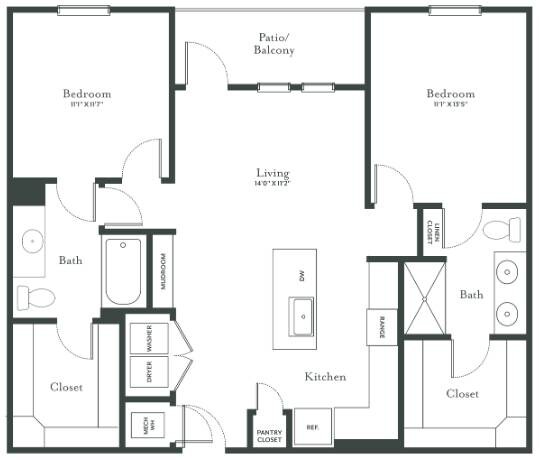 1 Dormitorio, 1 Baño, 931 pies²Disponible AhoraEl más grandeEsta opción tiene las unidades más grandes para este modeloGalería del Modelo