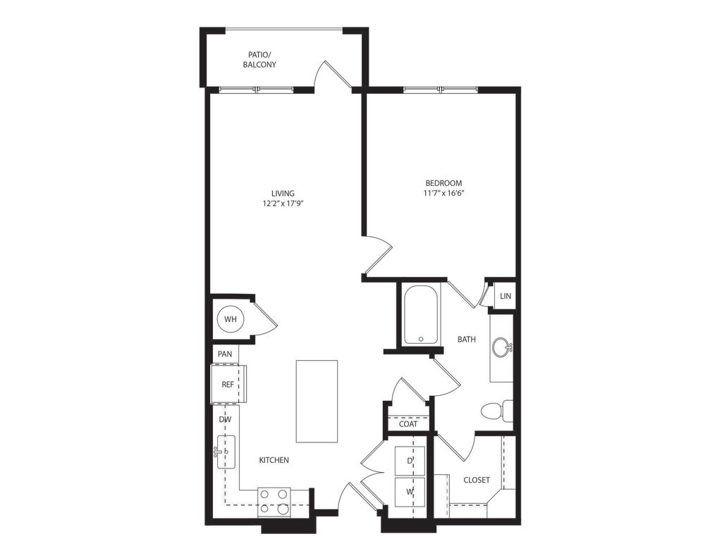 Modelo de apartamento: A1Desde $1,0941 Dormitorio, 1 Baño, 717 sq ftDisponible AhoraLos planos son representaciones artísticas. Todas las dimensiones son aproximadas. El producto y las especificaciones reales pueden variar en tamaño o detalle. No todas las características están disponibles en cada vivienda en alquiler. Por favor, consulta con un representante para obtener más detalles.