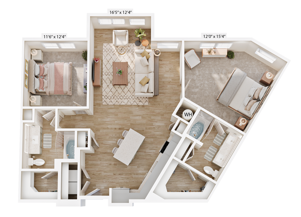 A2 - Plano 1 Los planos son representaciones artísticas. Todas las dimensiones son aproximadas. El producto y las especificaciones reales pueden variar en tamaño o detalle. No todas las características están disponibles en cada vivienda en alquiler. Por favor, consulta con un representante para obtener más detalles.