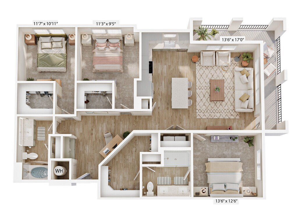 Modelo de apartamento: A3Desde $1,2391 Dormitorio, 1 Baño, 769 sq ftDisponible June 1, 2026Los planos son representaciones artísticas. Todas las dimensiones son aproximadas. El producto y las especificaciones reales pueden variar en tamaño o detalle. No todas las características están disponibles en cada vivienda en alquiler. Por favor, consulta con un representante para obtener más detalles.
