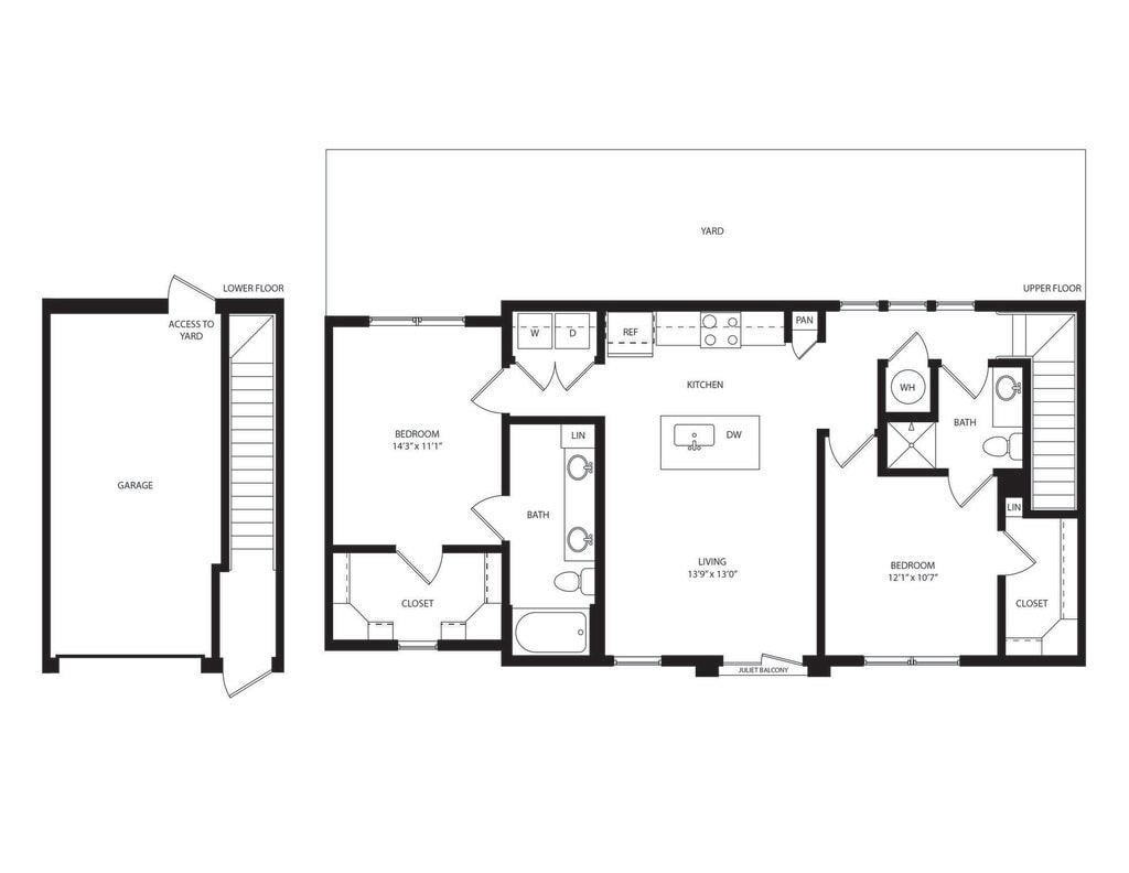 A1 - Plano 1 Los planos son representaciones artísticas. Todas las dimensiones son aproximadas. El producto y las especificaciones reales pueden variar en tamaño o detalle. No todas las características están disponibles en cada vivienda en alquiler. Por favor, consulta con un representante para obtener más detalles.