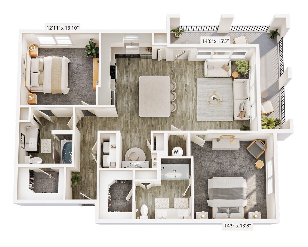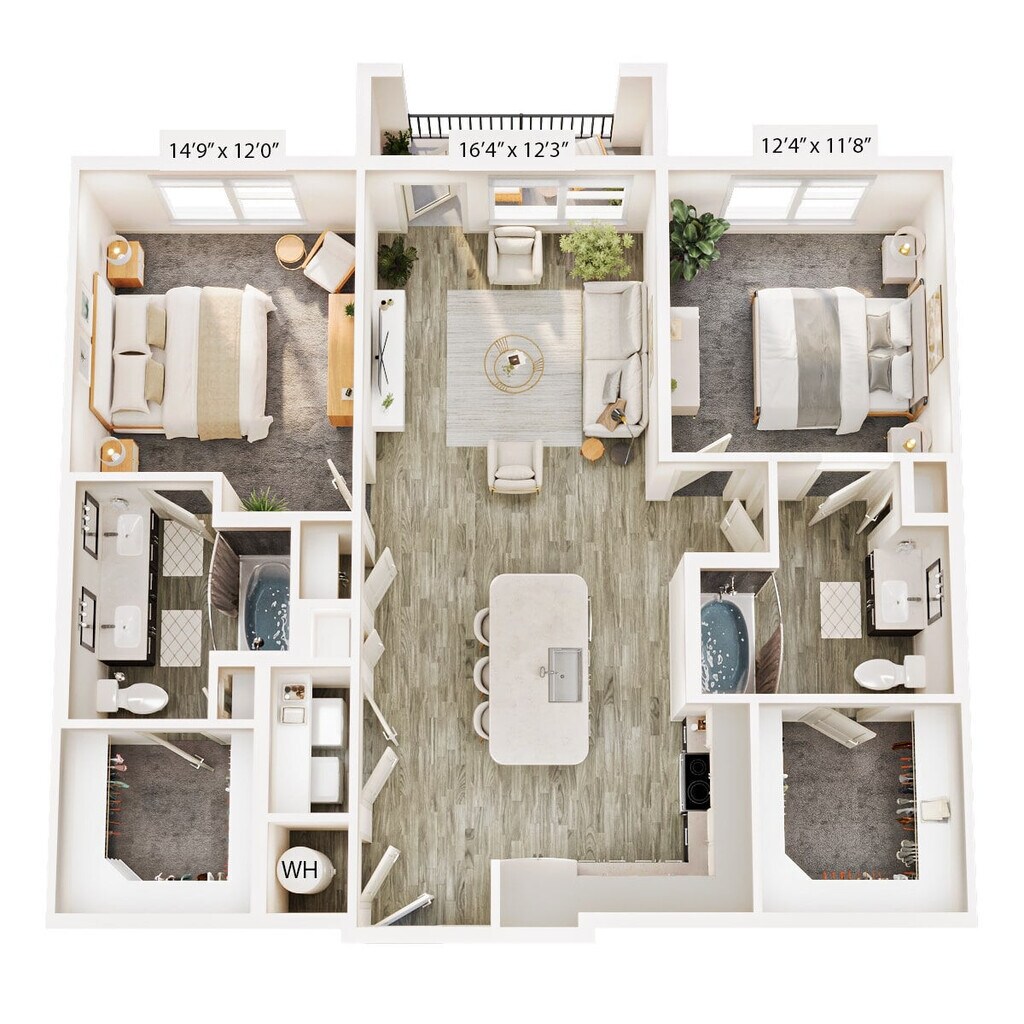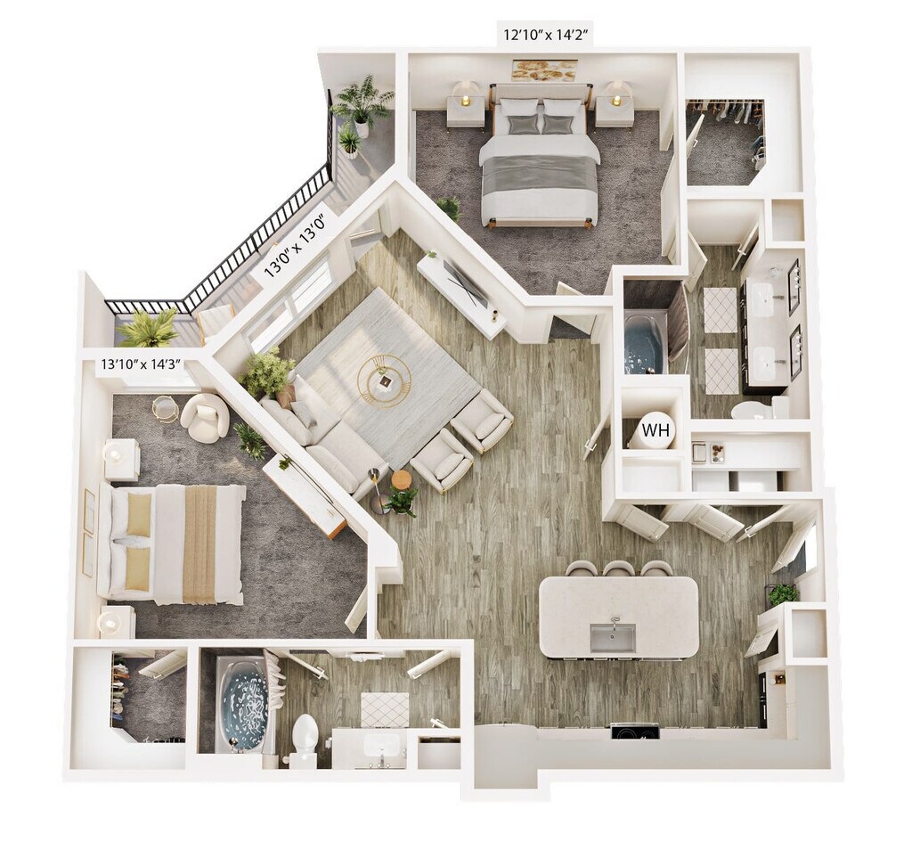 Modelo de apartamento: B1Desde $1,8392 Dormitorios, 2 Baños, 1109 sq ftDisponible Ahora![]()