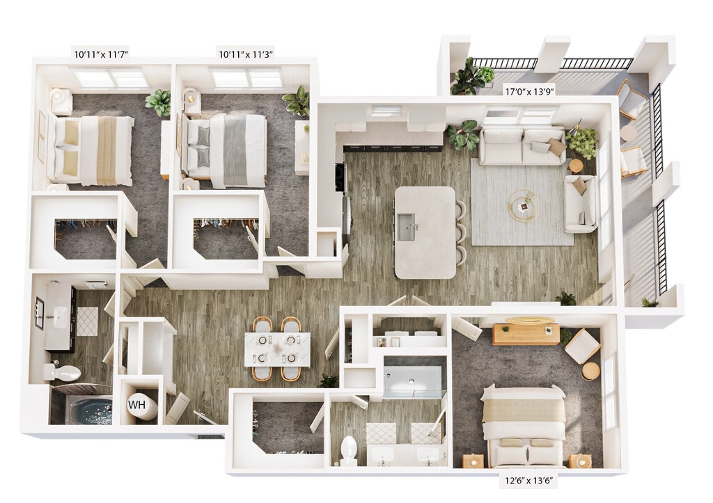 Modelo de apartamento: A3Desde $1,5701 Dormitorio, 1 Baño, 866 sq ftDisponible Ahora![]()