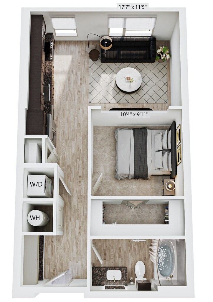 Estudio, 1 Baño, 618 pies²Disponible January 1, 2026Galería del Modelo