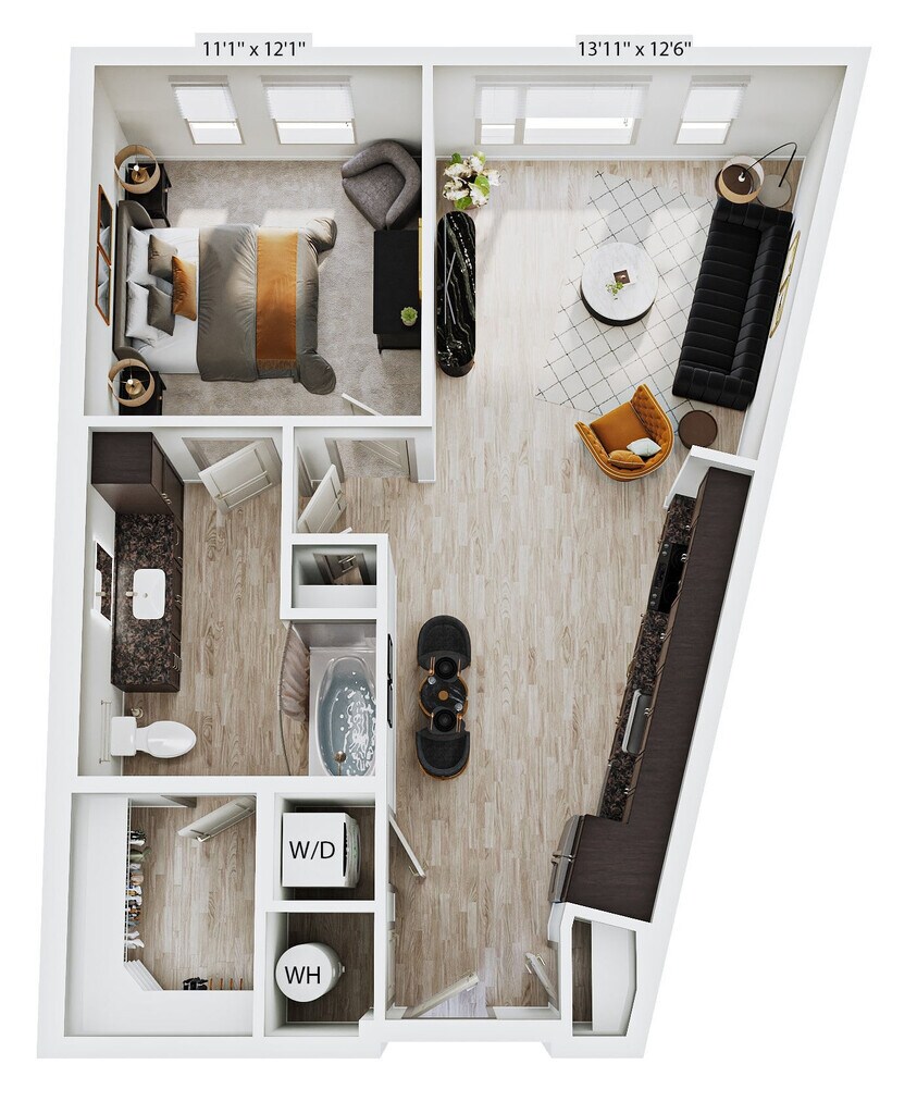 1 Dormitorio, 1 Baño, 743 pies²Disponible Dec 15Galería del Modelo
