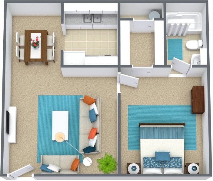 1 Dormitorio, 1 Baño, 575 pies²Disponible AhoraGalería del Modelo