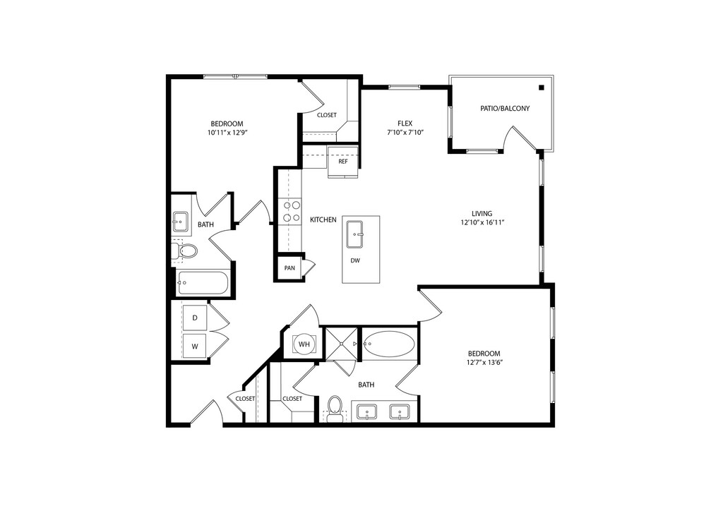 2 Dormitorios, 2 Baños, 1114 pies²Disponible AhoraGalería del Modelo