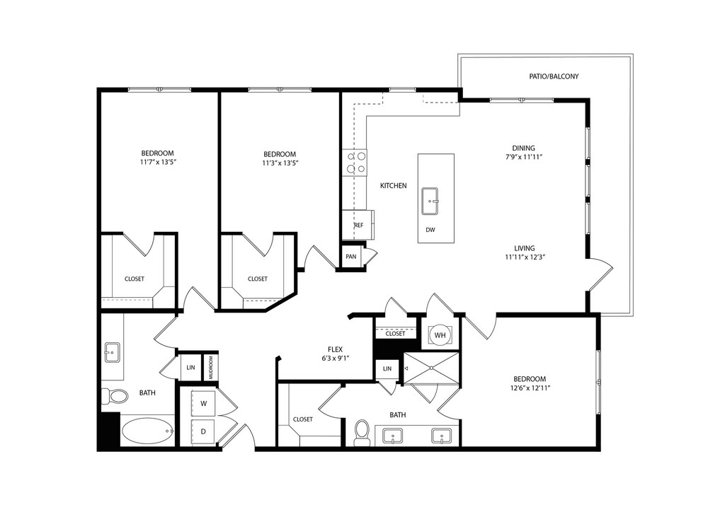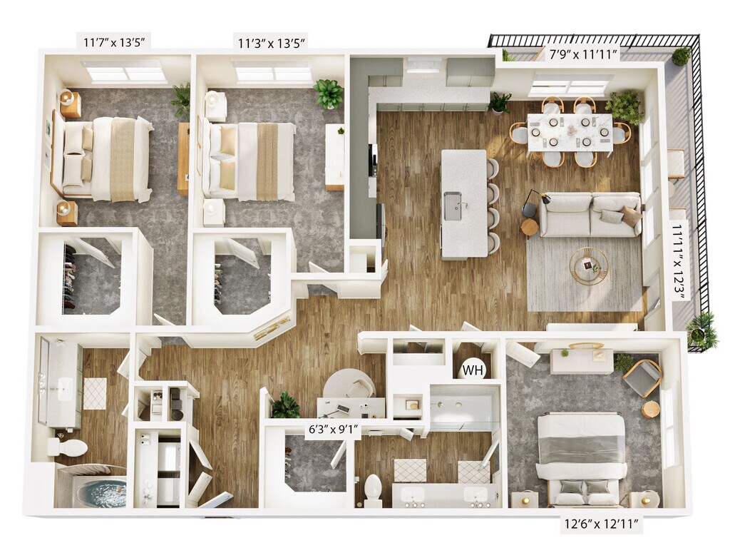 Modelo de apartamento: A3Desde $1,2201 Dormitorio, 1 Baño, 723 sq ftDisponible Ahora![]()