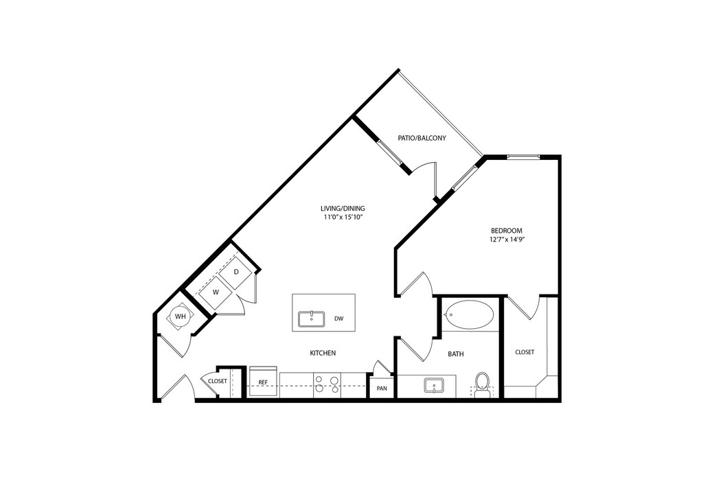 1 Dormitorio, 1 Baño, 723 pies²Disponible AhoraGalería del Modelo