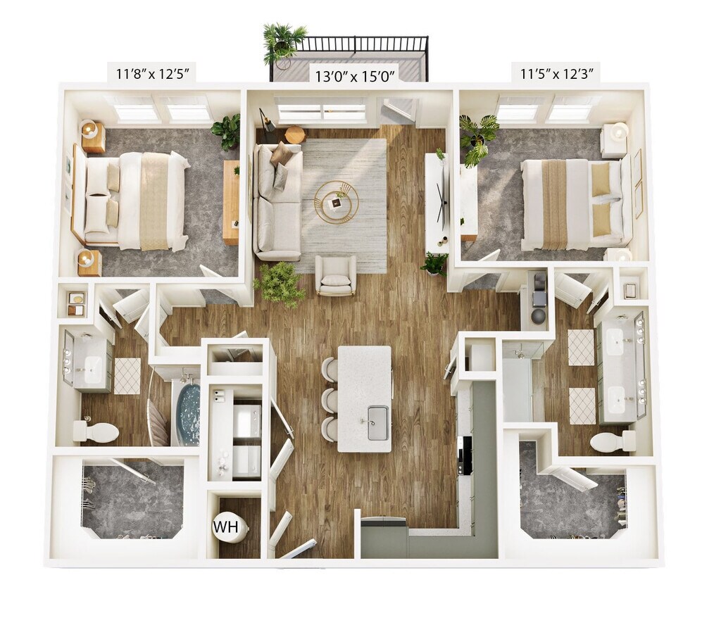 Modelo de apartamento: A2Desde $1,2501 Dormitorio, 1 Baño, 718 sq ftDisponible Ahora![]()