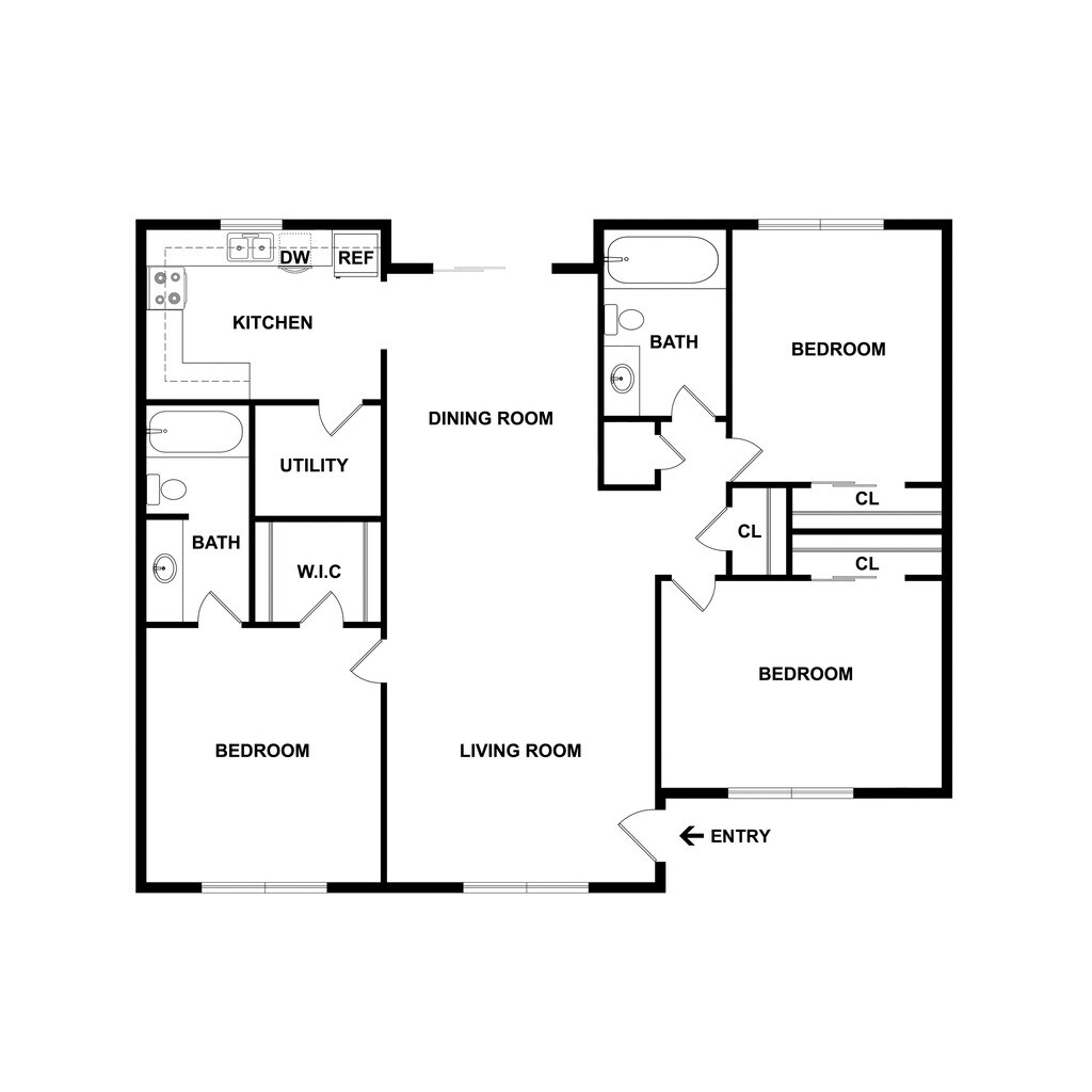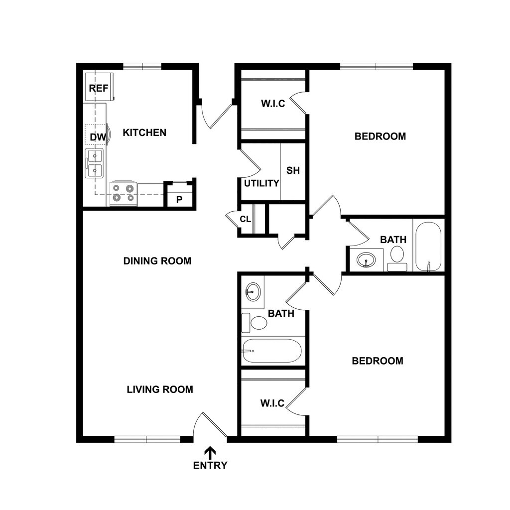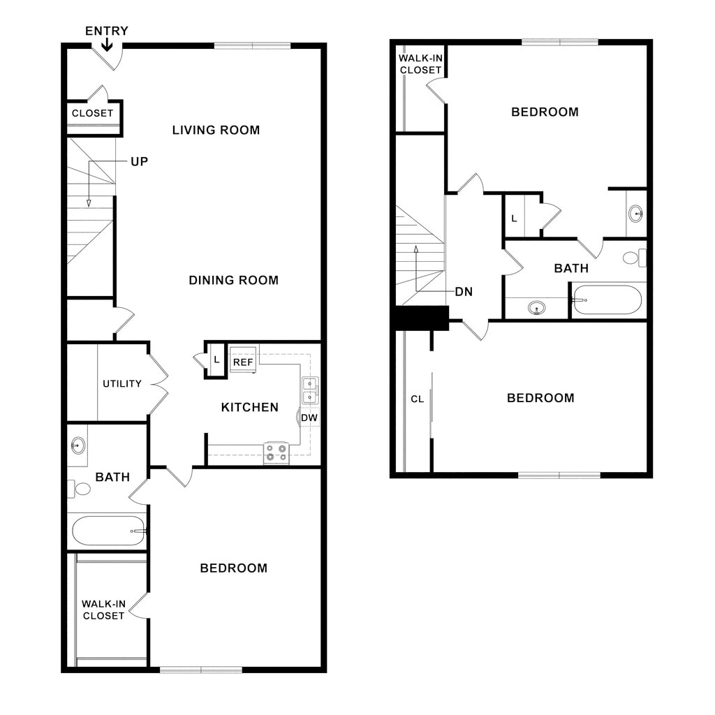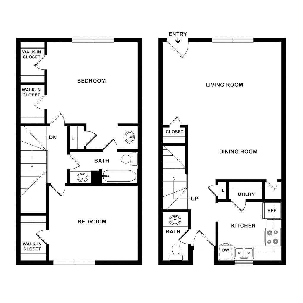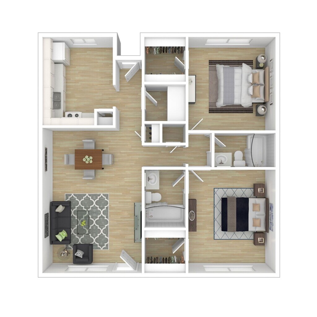 Modelo de apartamento: 2 Bedroom + 1 BathDesde $1,0752 Dormitorios, 1 Baño, 912 sq ftDisponible Ahora![]()