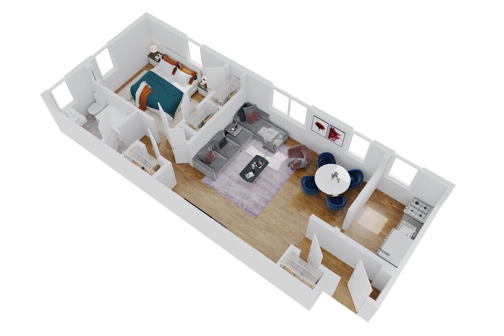 1 Dormitorio, 1 Baño, 630 pies²Disponible AhoraGalería del Modelo