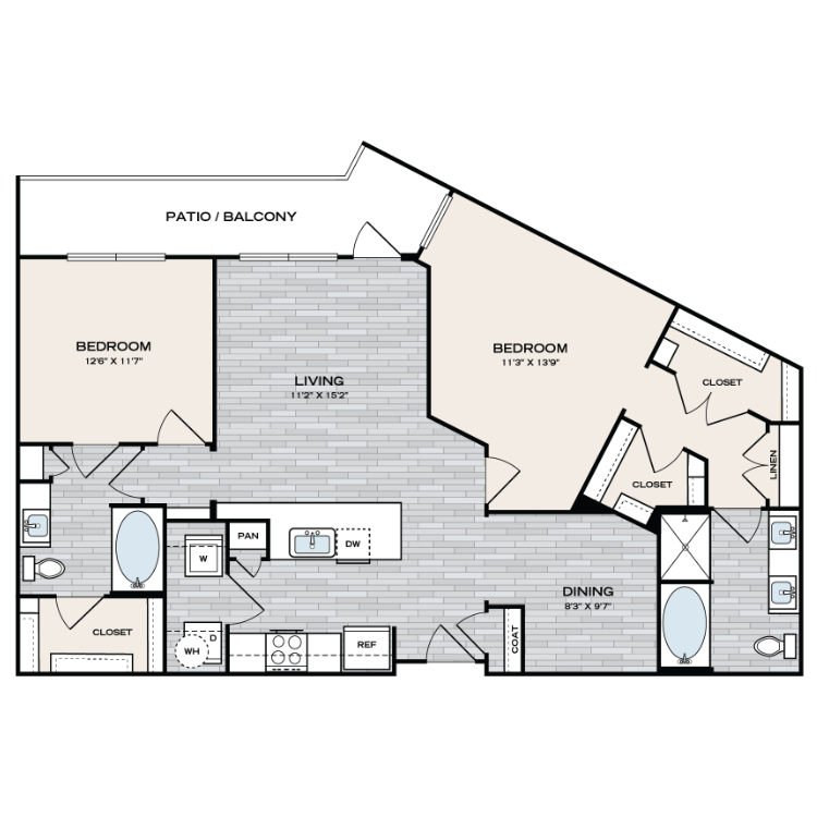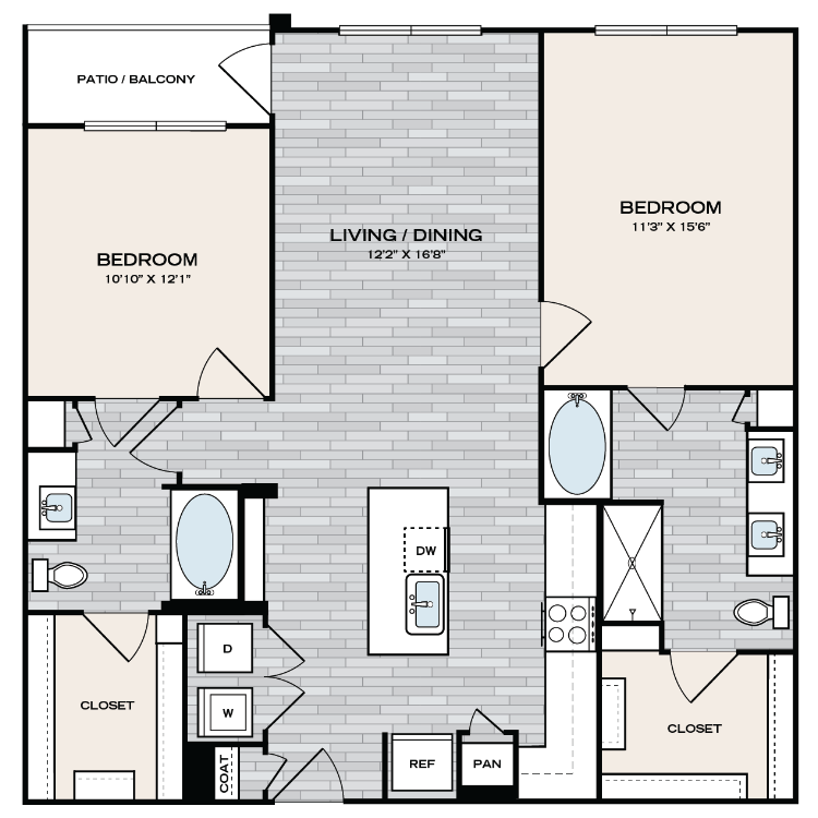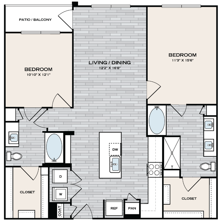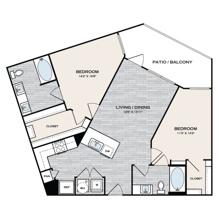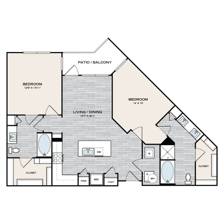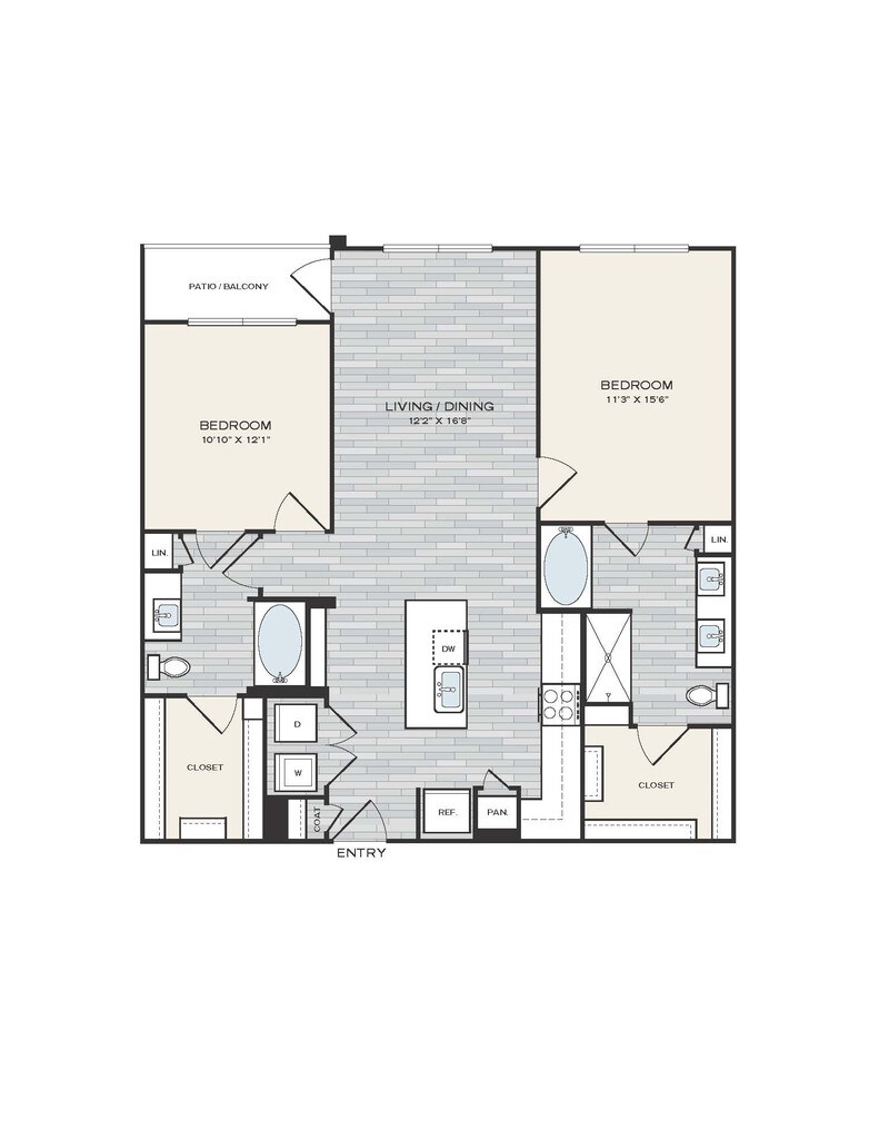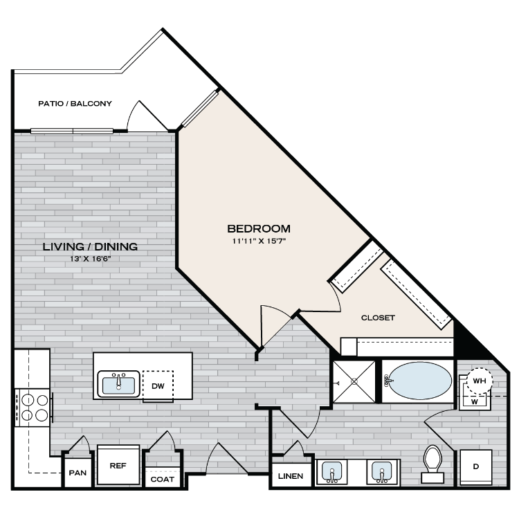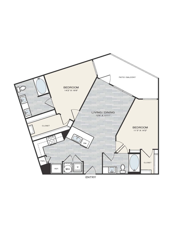 Modelo de apartamento: A1Desde $1,3671 Dormitorio, 1 Baño, 684 sq ftDisponible Ahora![]()